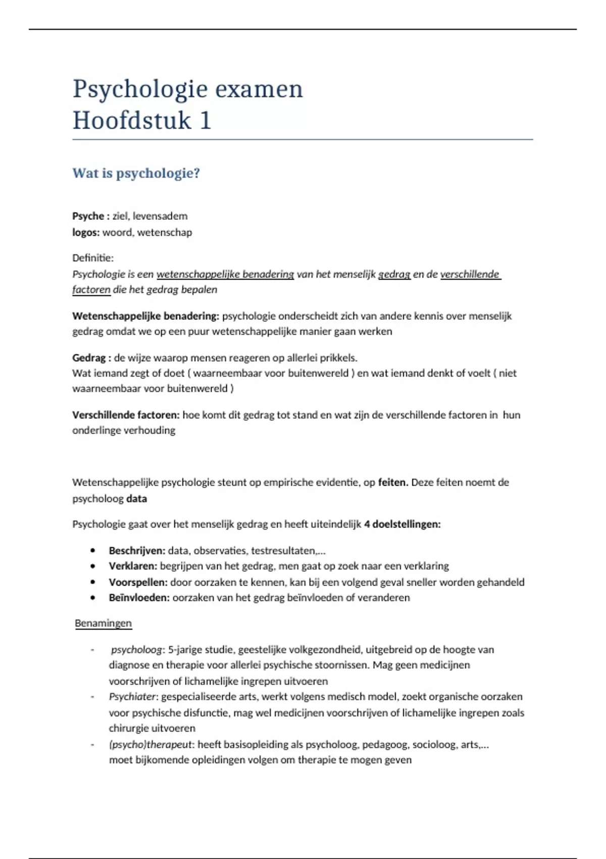 Een volledige, duidelijke samenvatting van het vak psychologie in het eerste jaar.