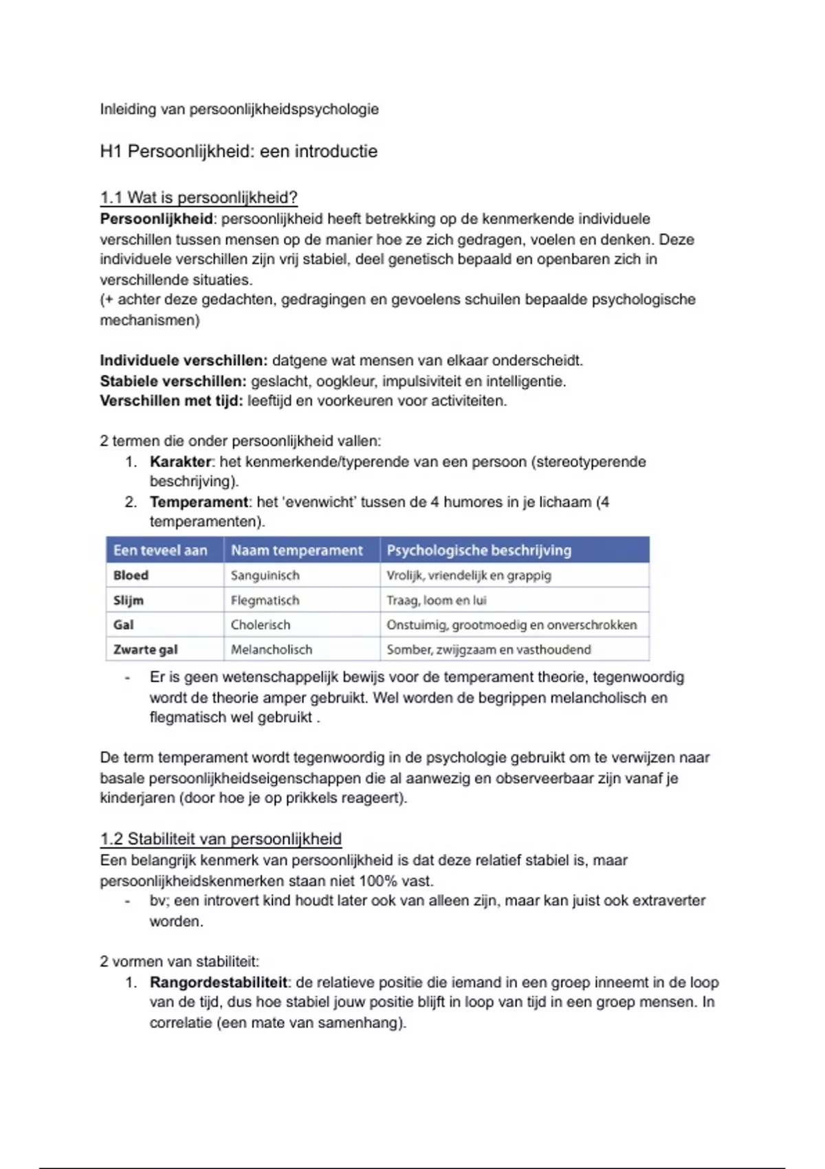 Persoonlijkheid: persoonlijkheid heeft betrekking op de kenmerkende individuele