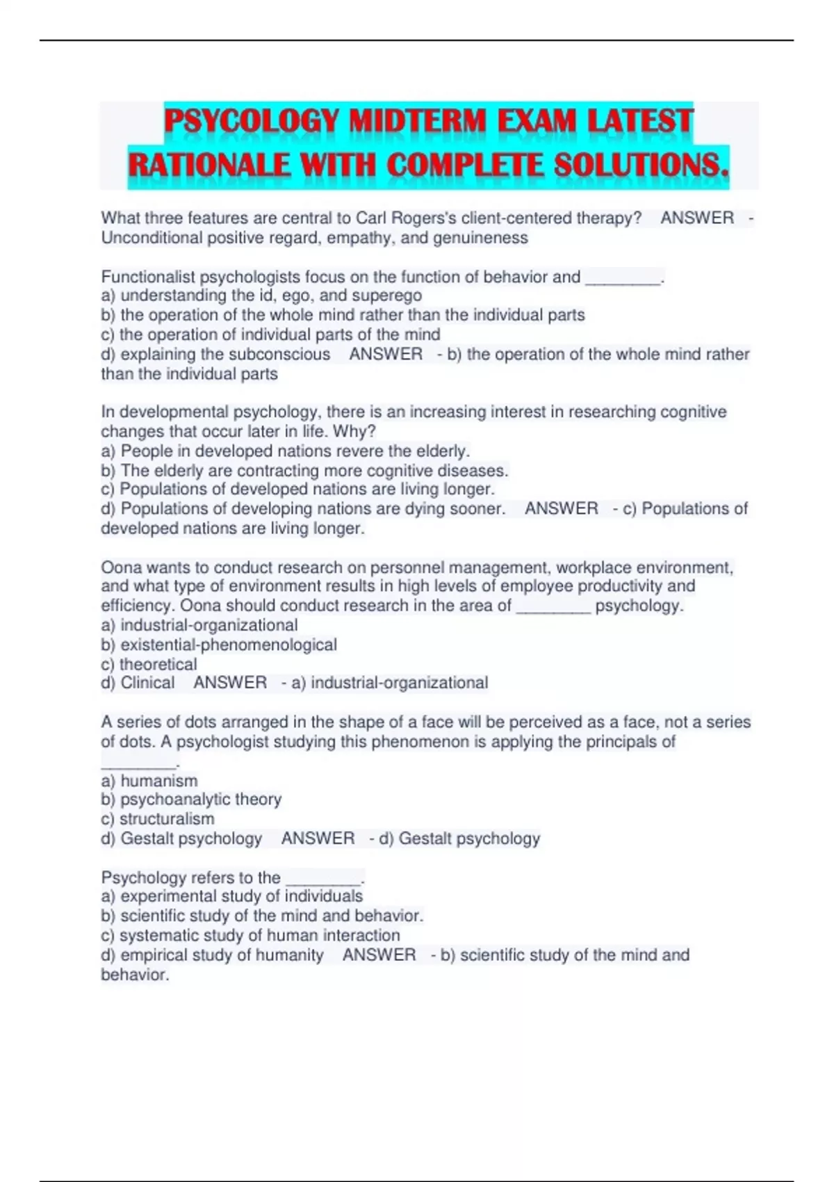 PSYCOLOGY MIDTERM EXAM LATEST RATIONALE WITH COMPLETE SOLUTIONS.