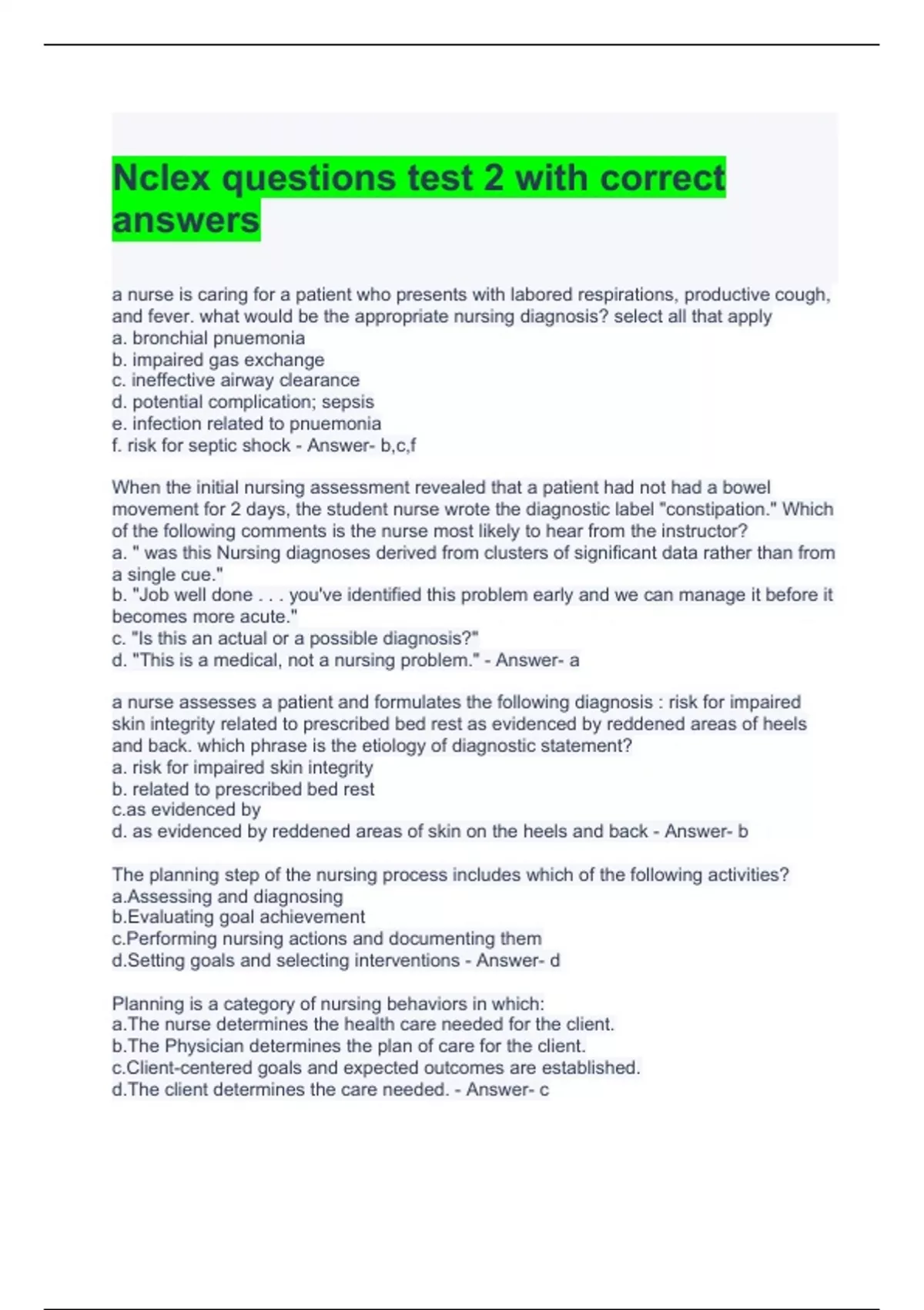 nclex questions test 2 with correct answers