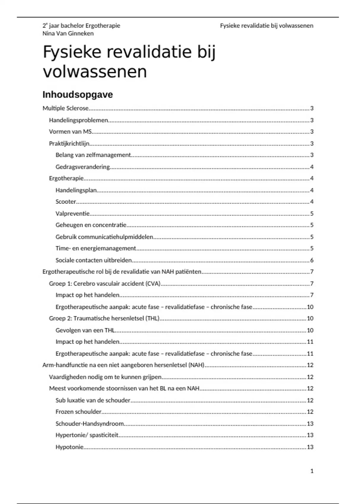 Volledige samenvatting van het 2e jaarsvak Fysieke revalidatie deel volwassenen binnen de opleiding Ergotherapie. Met deze samenvatting in eerste zit geslaagd voor dit vak.
