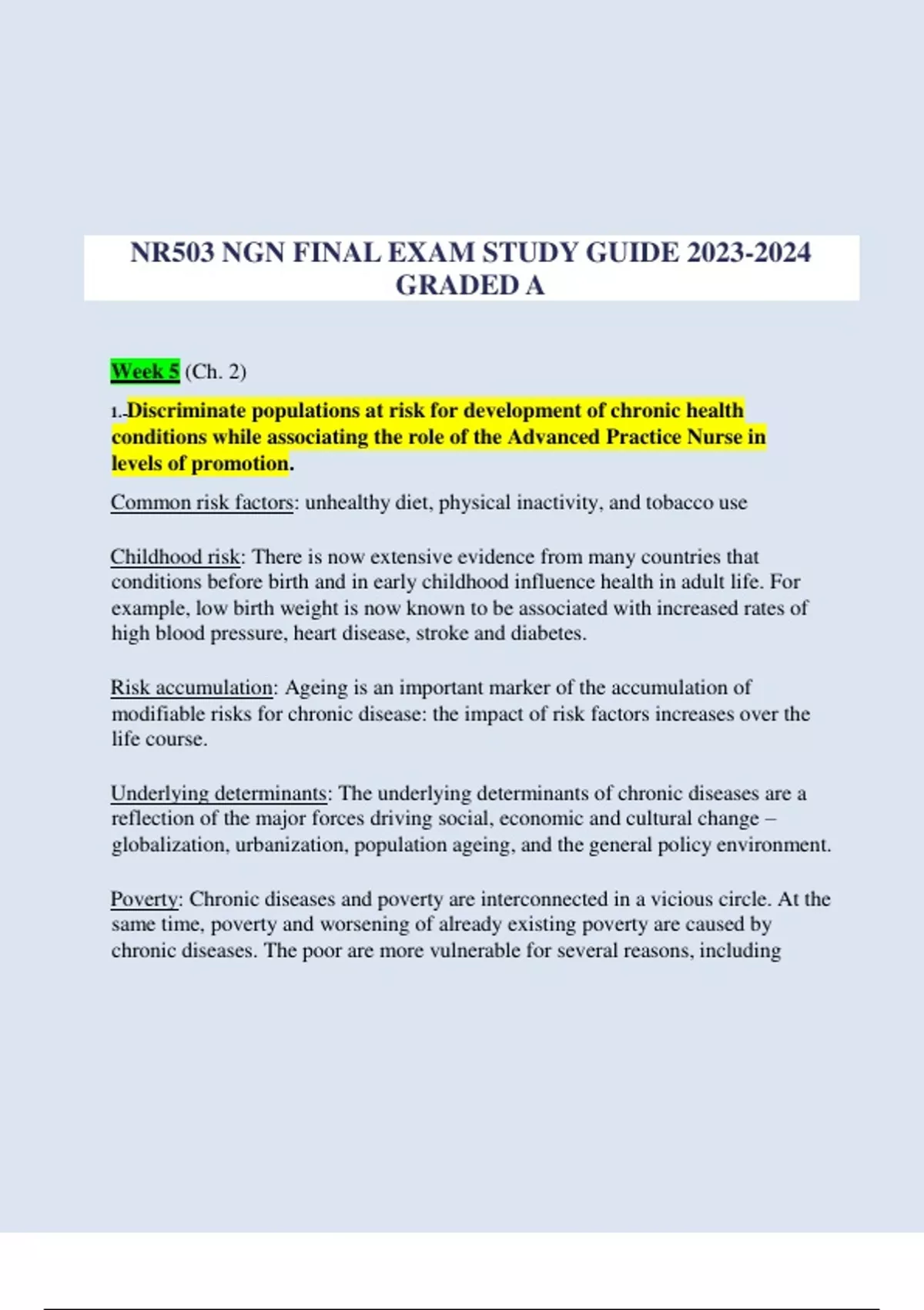 1.Discriminate populations at risk for development of chronic health