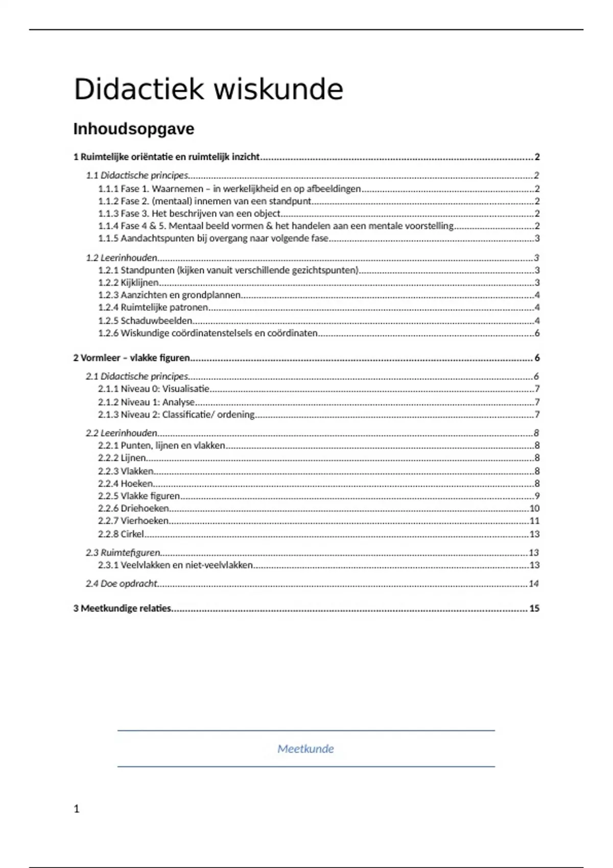 Dit is een samenvatting van de lessen en de cursus deel meetkunde. Didactiek wiskunde 2