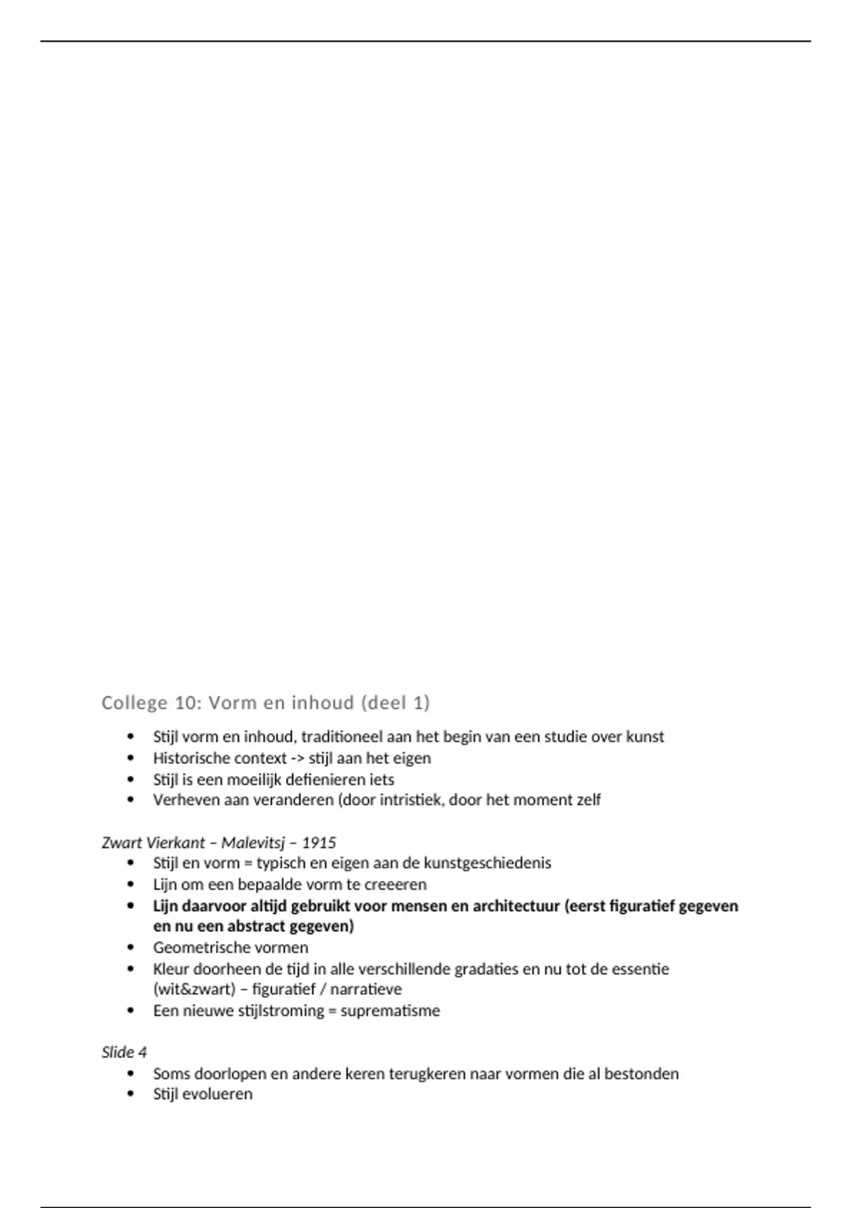 Samenvatting: College 10 ( Vorm en inhoud (deel 1))