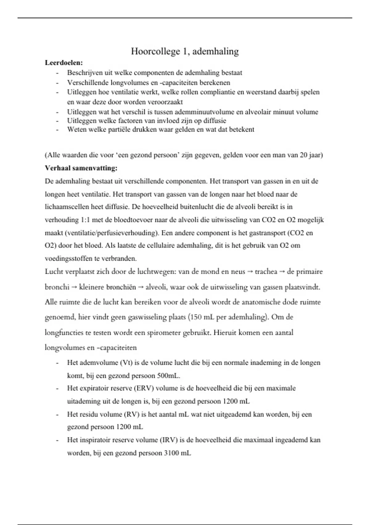 Hoorcollege 1, ademhaling