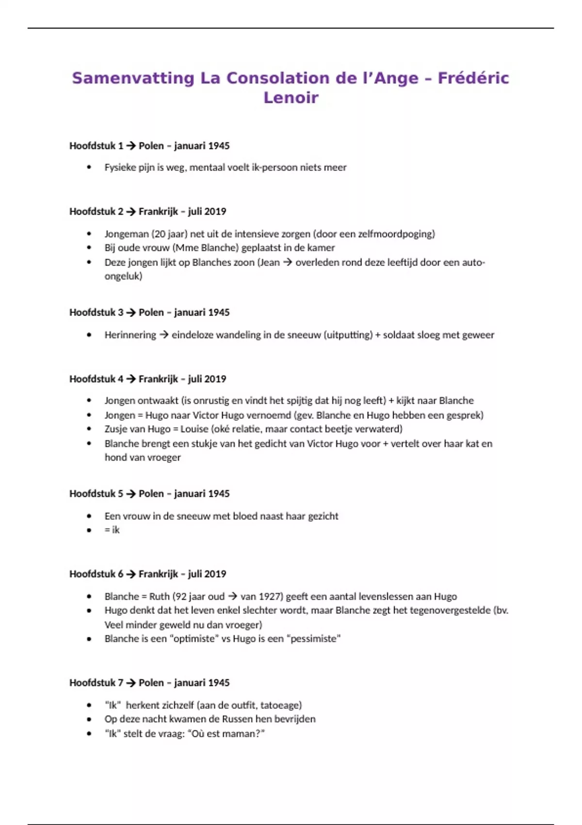Samenvatting La Consolation de l’Ange – Frédéric