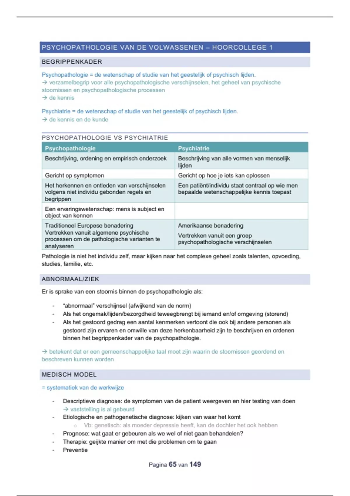 PSYCHOPATHOLOGIE VAN DE VOLWASSENEN – HOORCOLLEGE 1