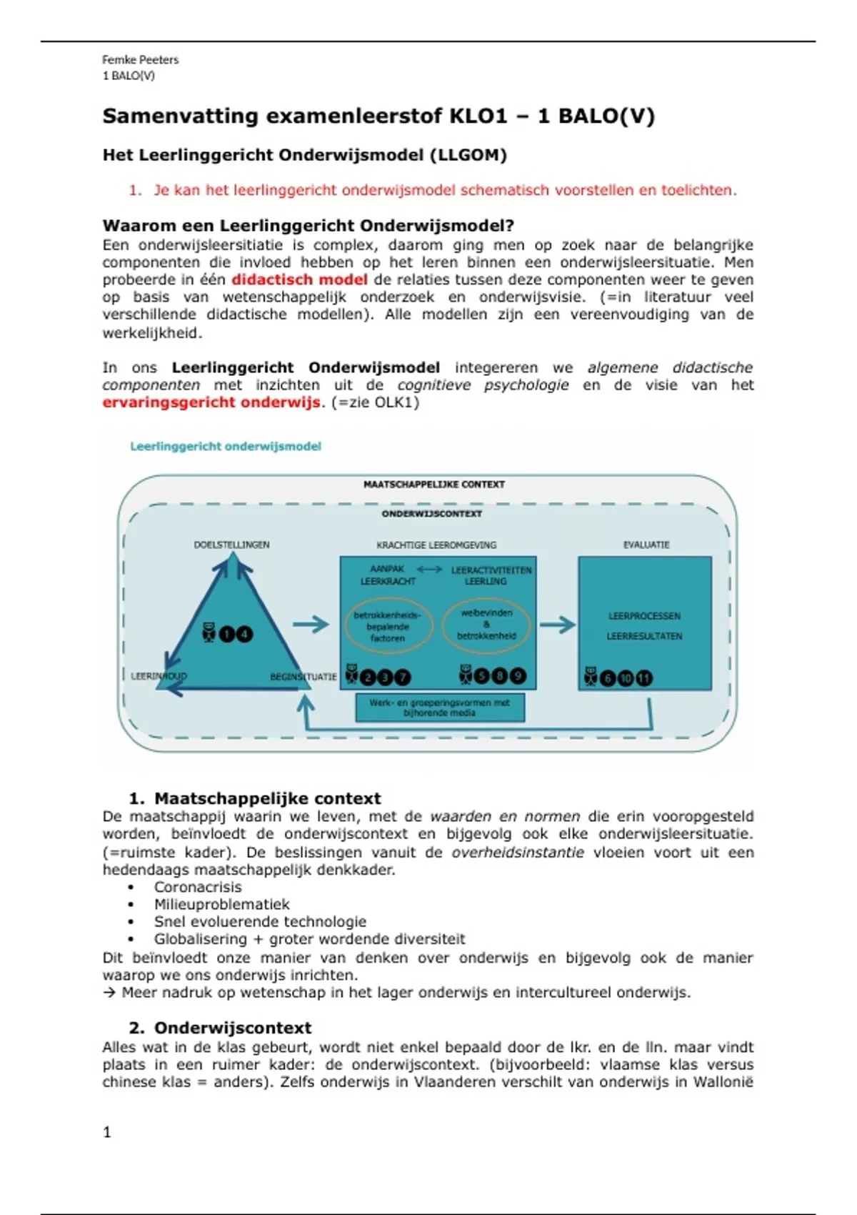 Samenvatting KLO 1 - Krachtige Leeromgeving 1 (examenleerstof a.d.h.v leerdoelen) - BALO(V) Thomas More Mechelen