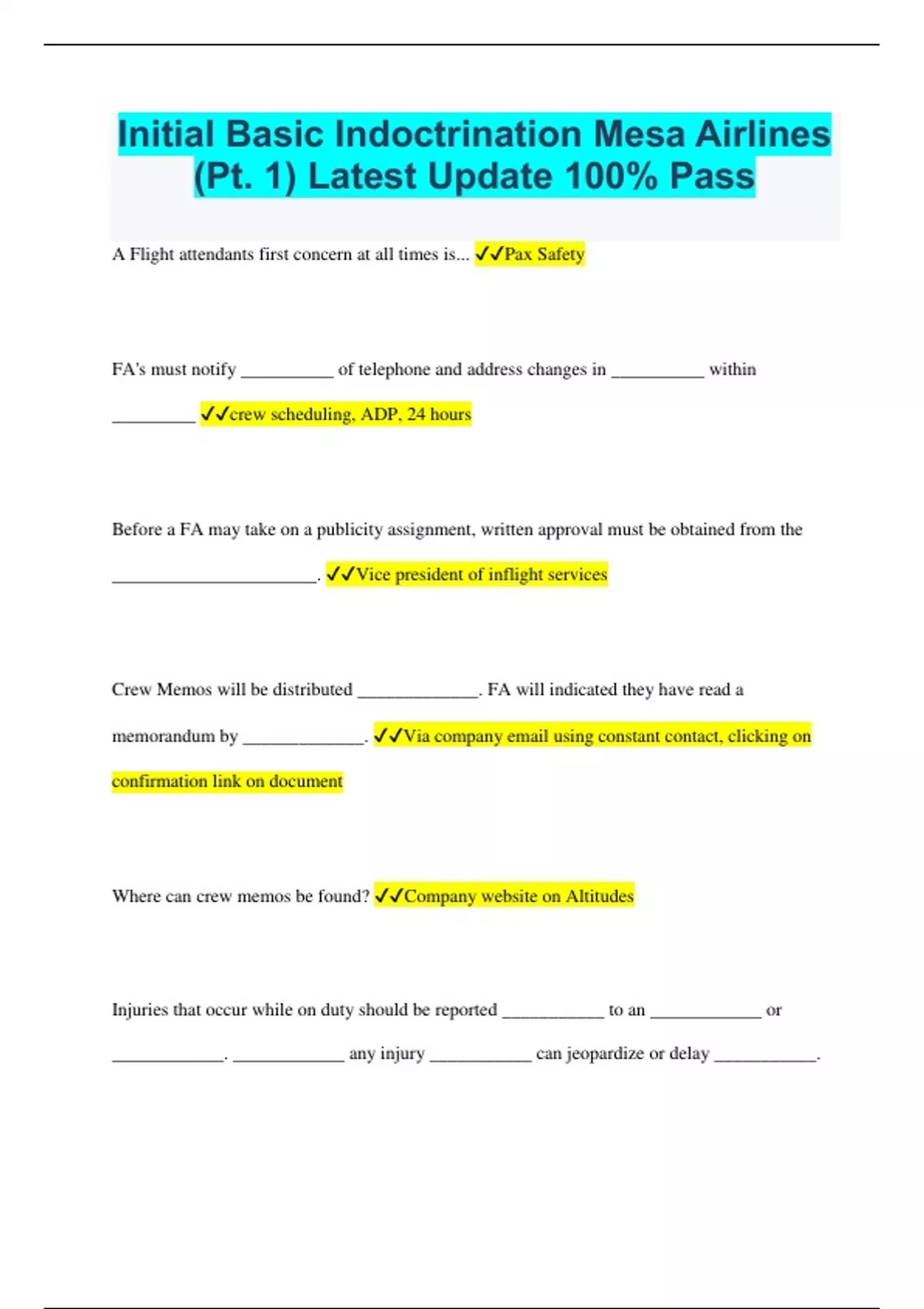 Initial Basic Indoctrination Mesa Airlines (Pt. 1) Latest Update 100% Pass