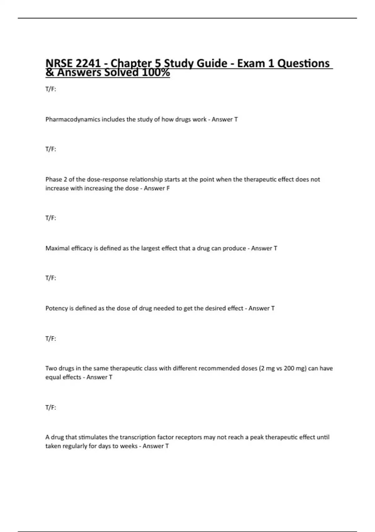 NRSE 2241 - Chapter 5 Study Guide - Exam 1 Questions & Answers Solved 100%