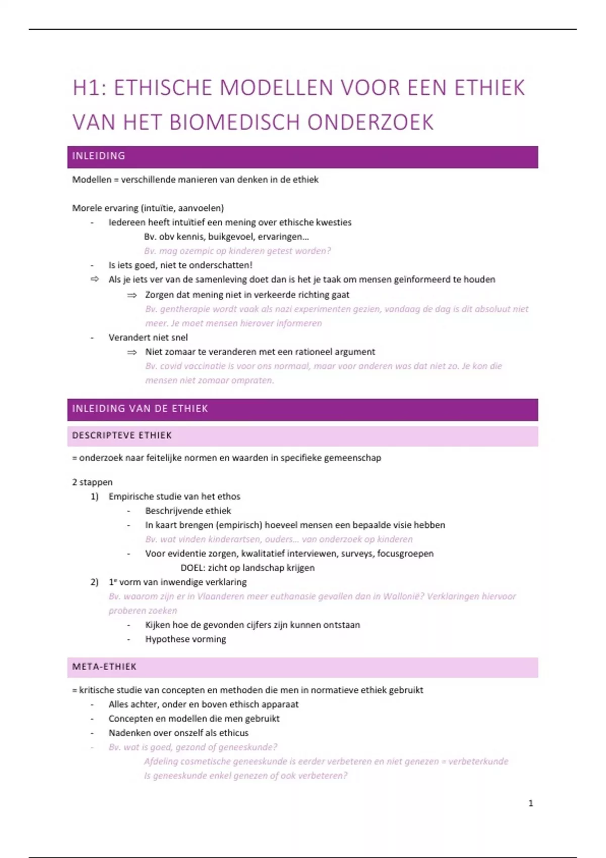 H1: ETHISCHE MODELLEN VOOR EEN ETHIEK
