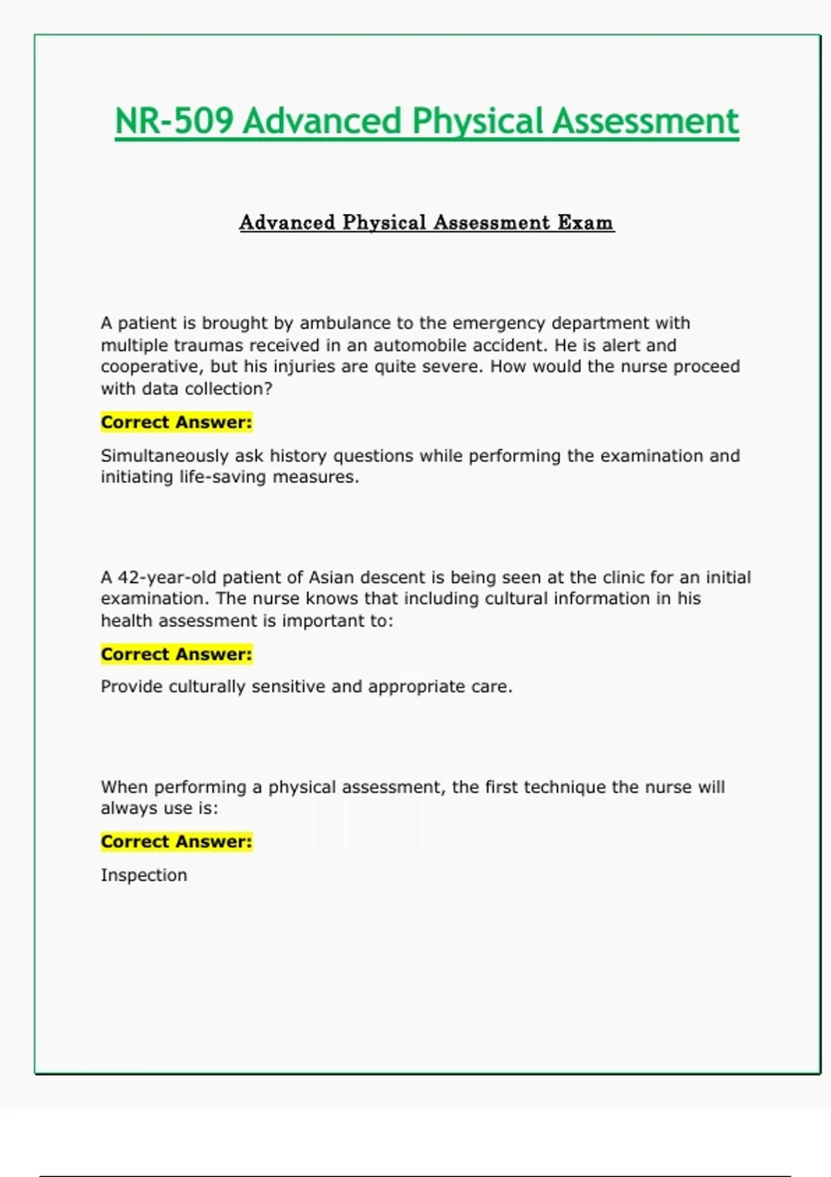 NR509 / NR 509 Exam (Latest 2024 / 2025): Advanced Physical Assessment - Chamberlain