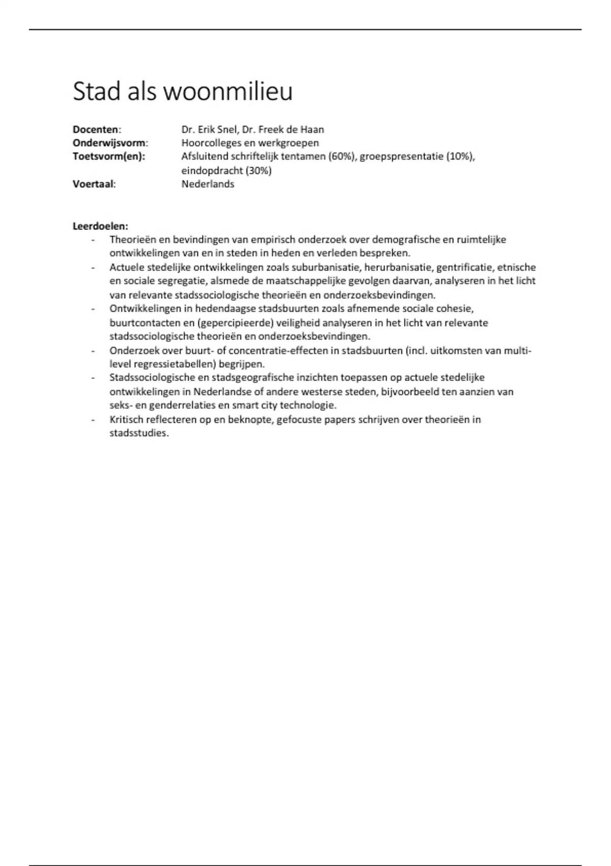 - Stadssociologische en stadsgeografische inzichten toepassen op actuele stedelijke