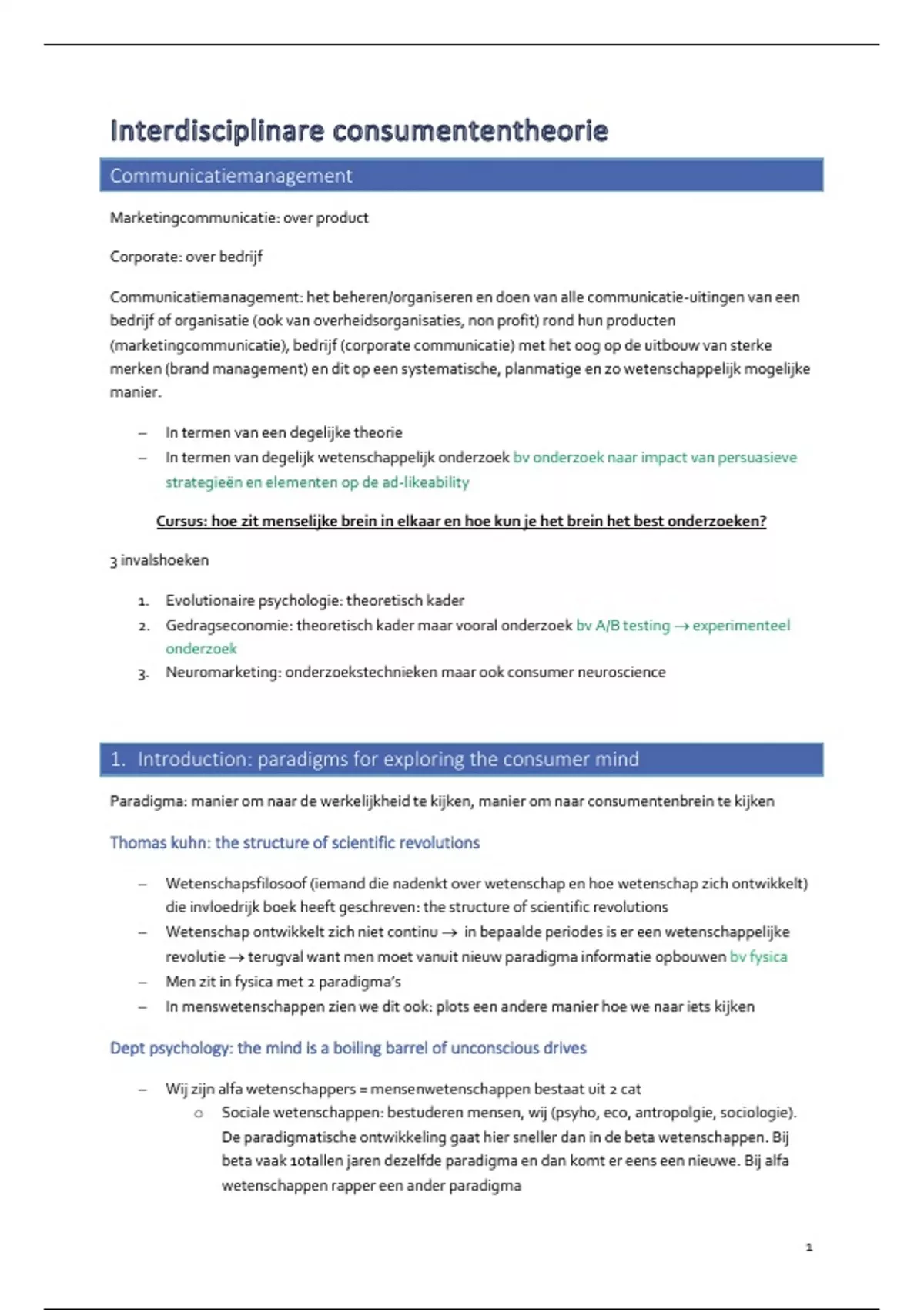 VOLLEDIGE samenvatting interdisciplinaire consumententheorie - prof. Vyncke