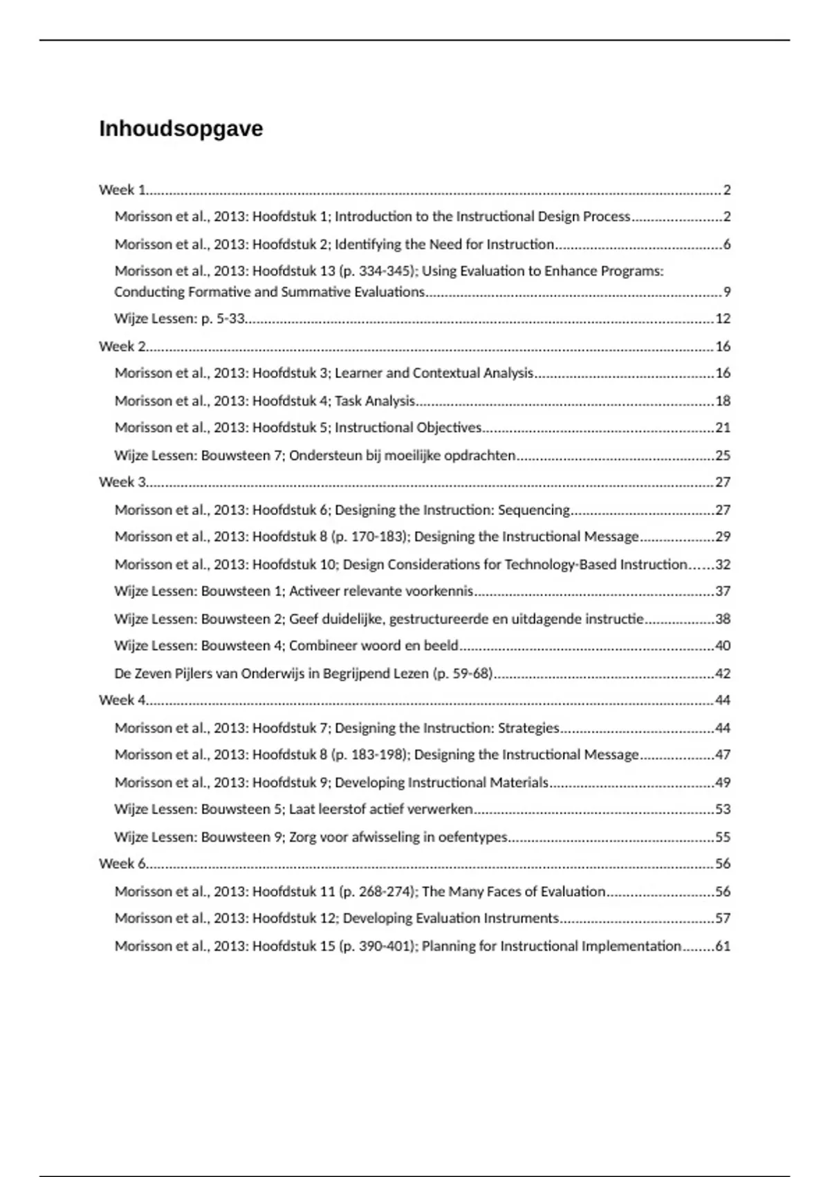 Dit document bevat een samenvatting van alle literatuur voor het vak Ontwerpen van Leersituaties Inleidend. Hierin staan dus alle nodige hoofdstukken van Morrison et al., Wijze Lessen en het artikel van Bogaerds-Hazenberg et al. (over begrijpend lezen).