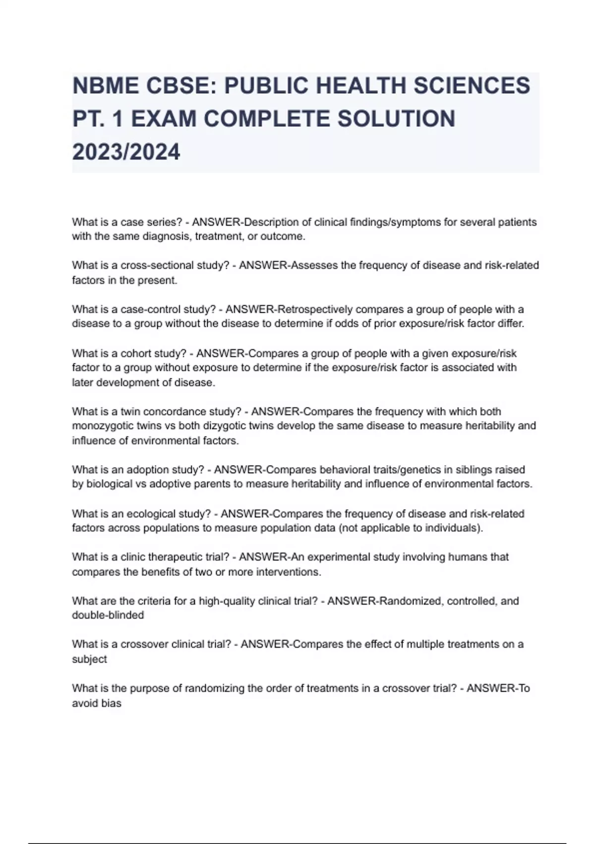NBME CBSE: PUBLIC HEALTH SCIENCES PT. 1 EXAM COMPLETE SOLUTION 2023/2024