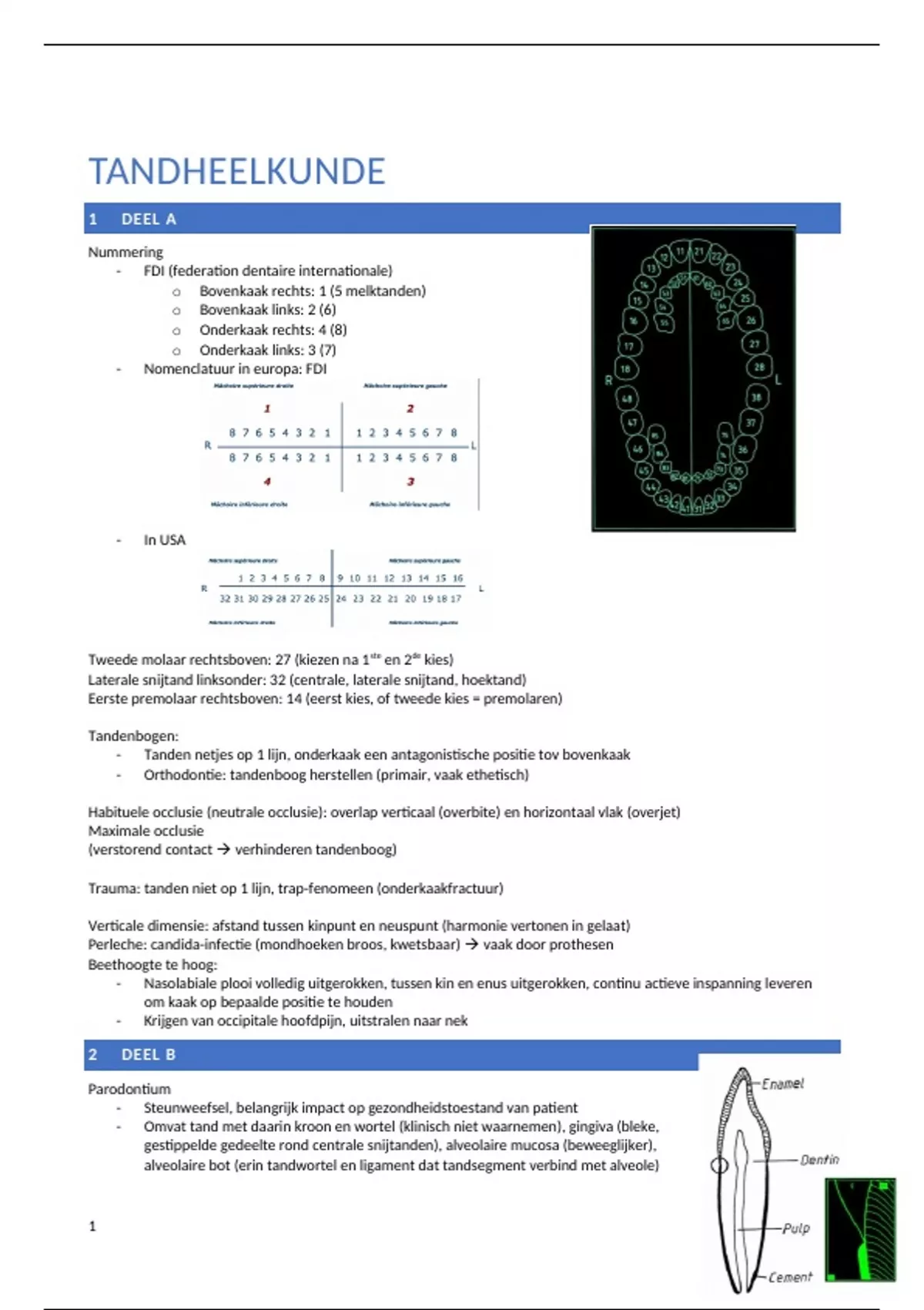 Deel 1 - samenvatting tandheelkunde