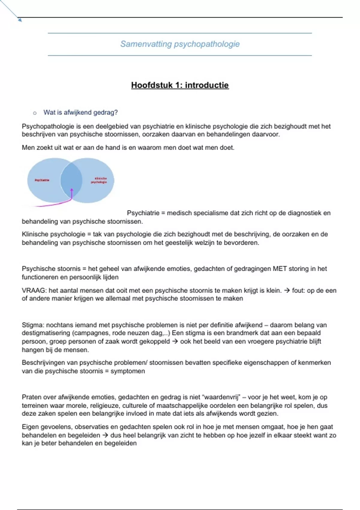 Samenvatting psychopathologie