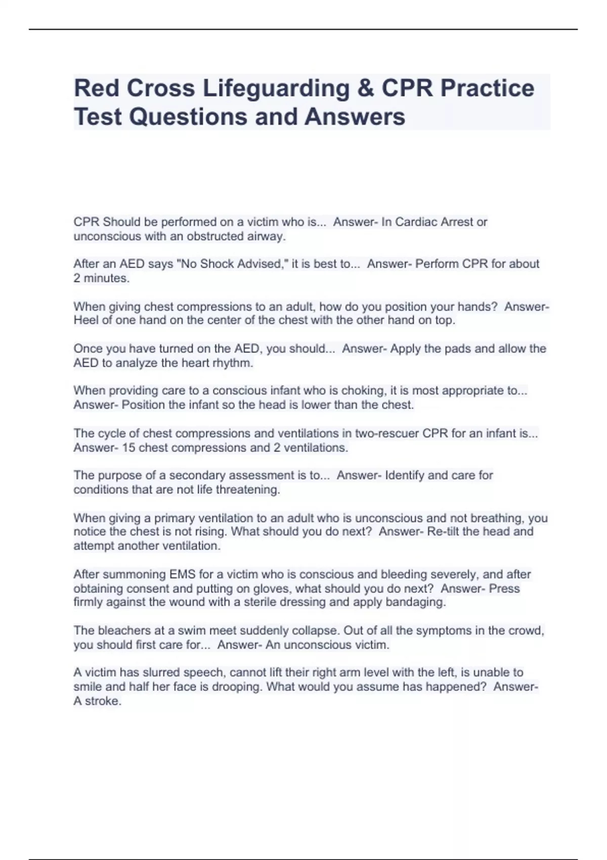 Red Cross Lifeguarding & CPR Practice Test Questions and A