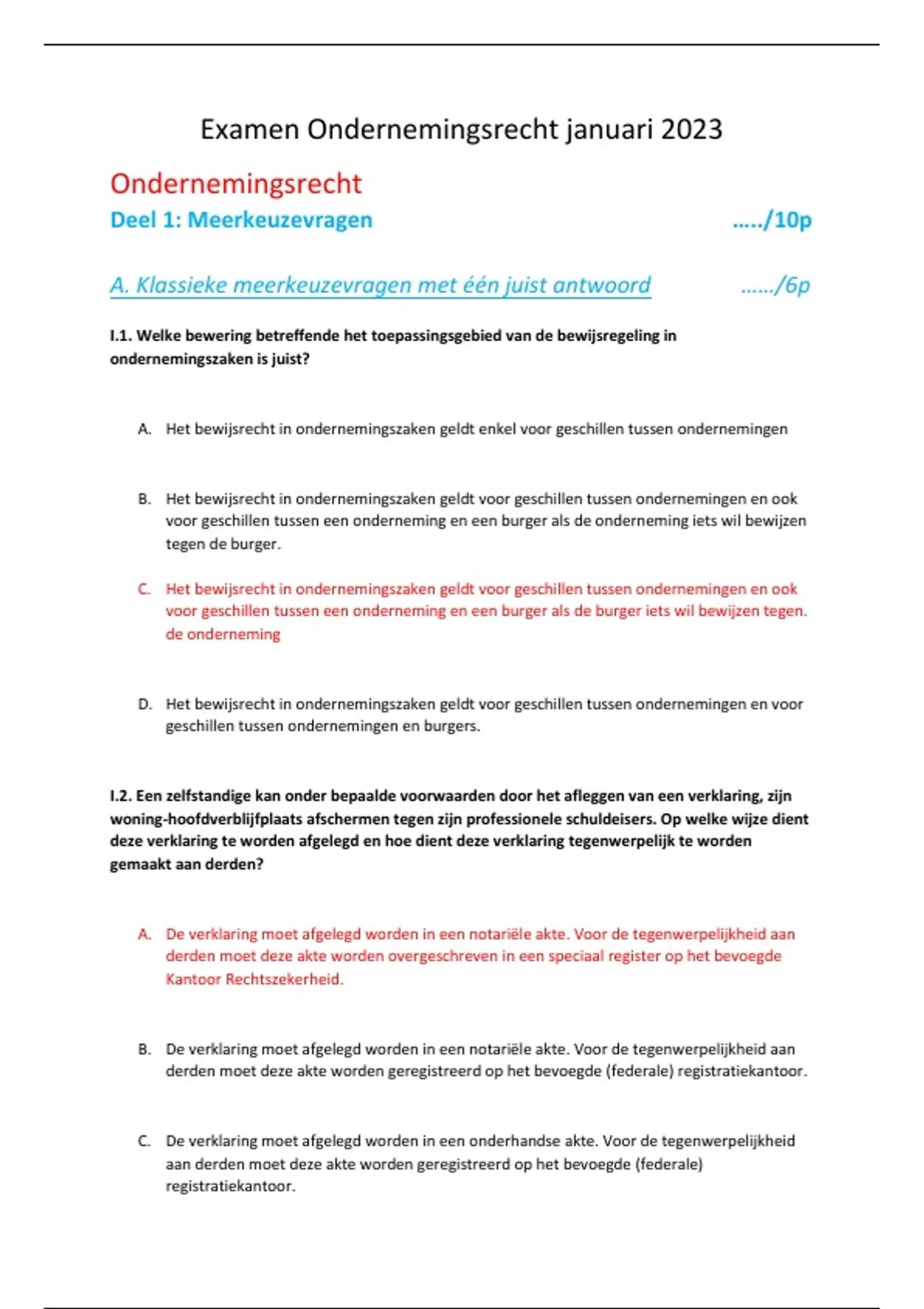 A. Klassieke meerkeuzevragen met één juist antwoord ……/6p