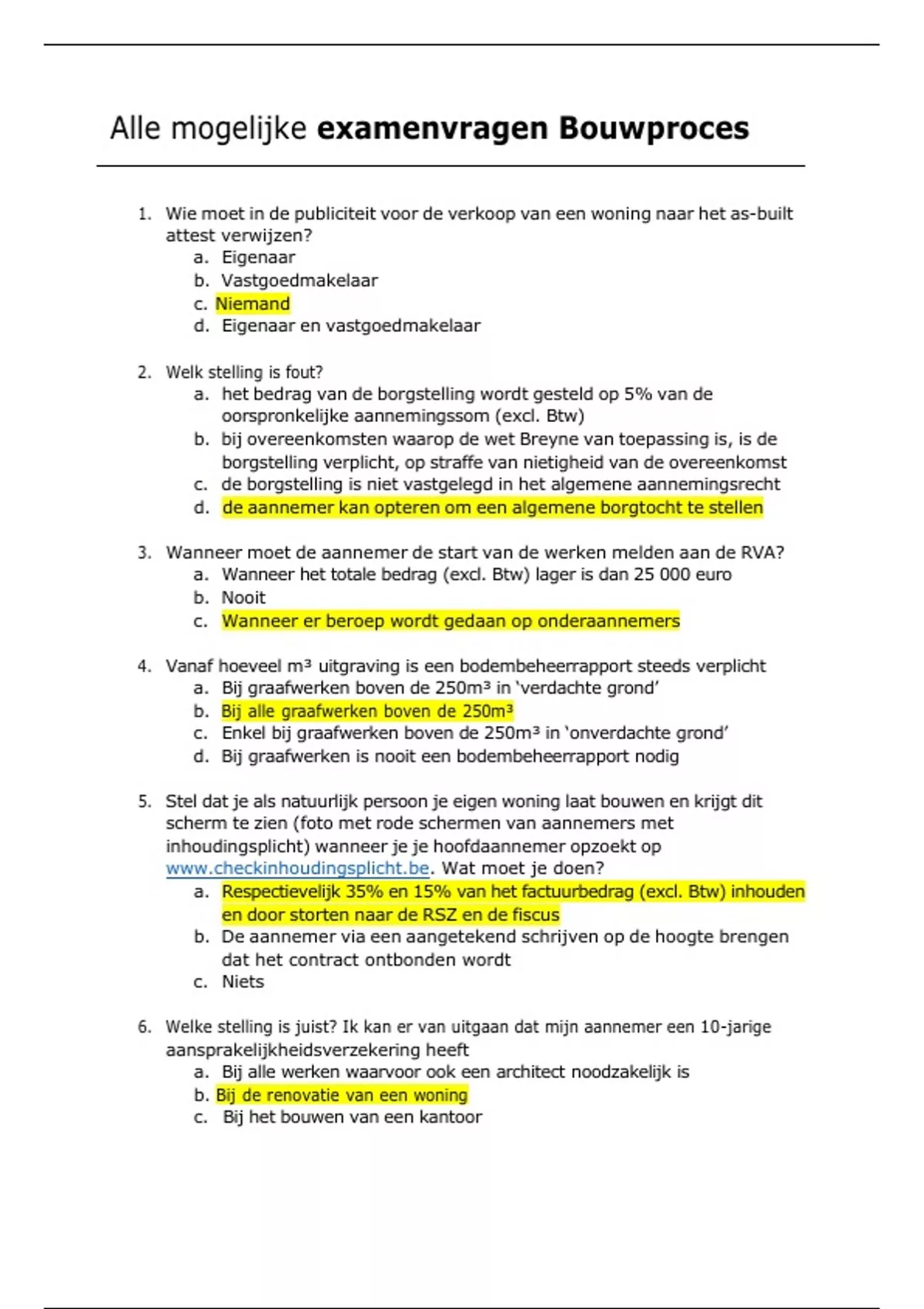 Alle examenvragen bouwproces 2023 vastgoed