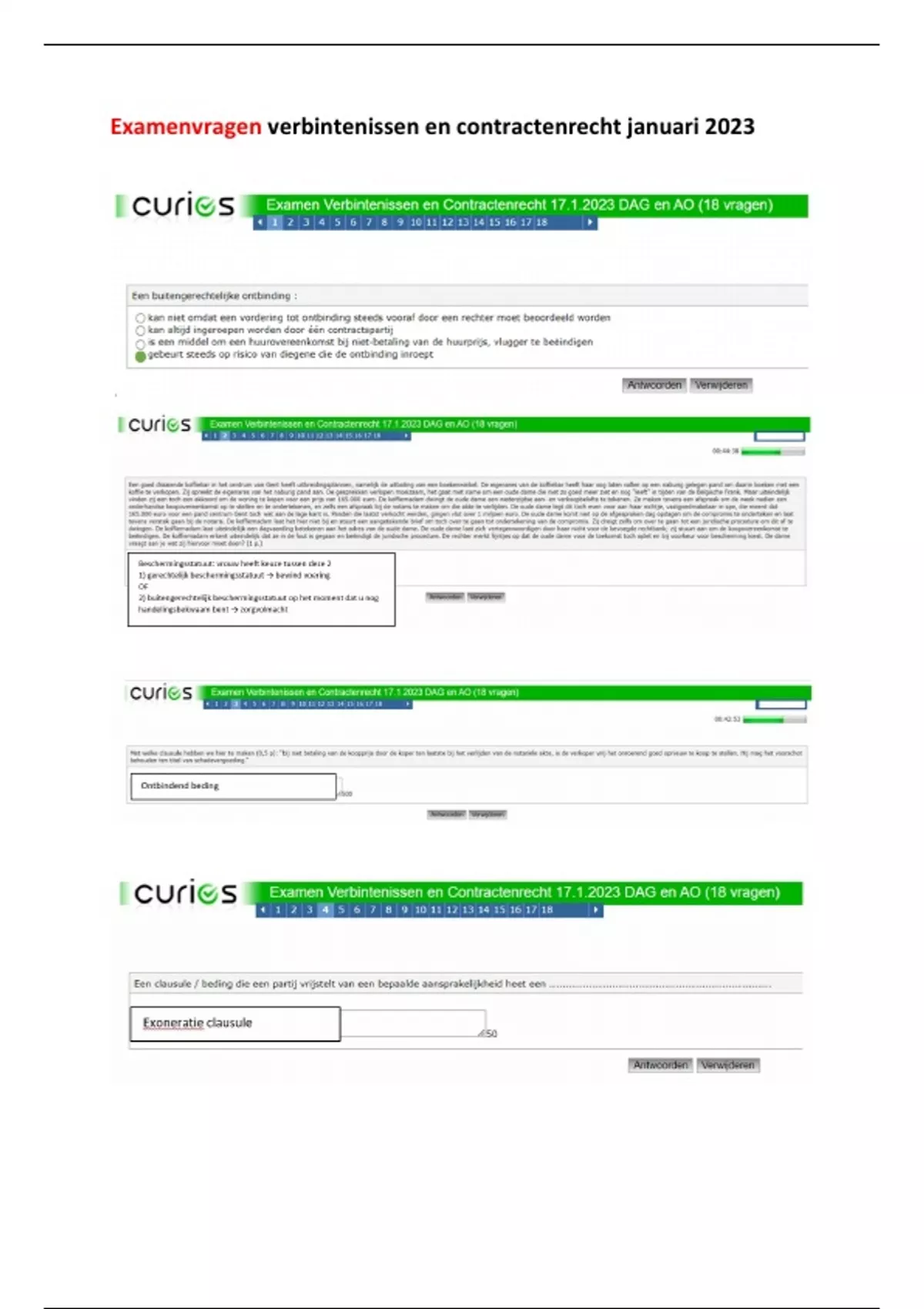 Samenvatting Examenvragen verbintenissen en contractenrecht januari 2023 + examenvragen herexamen 2023