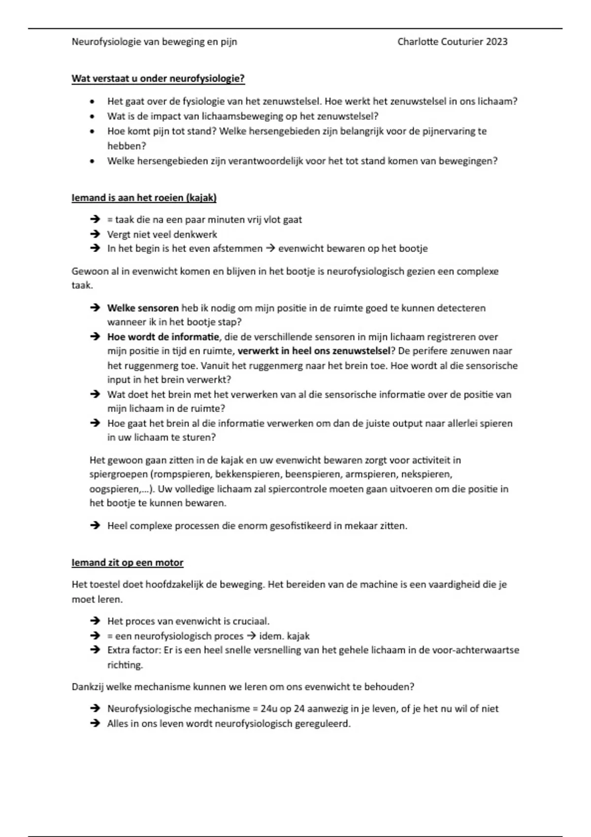 , Neurofysiologie van beweging en pijn Charlotte Couturier 2023