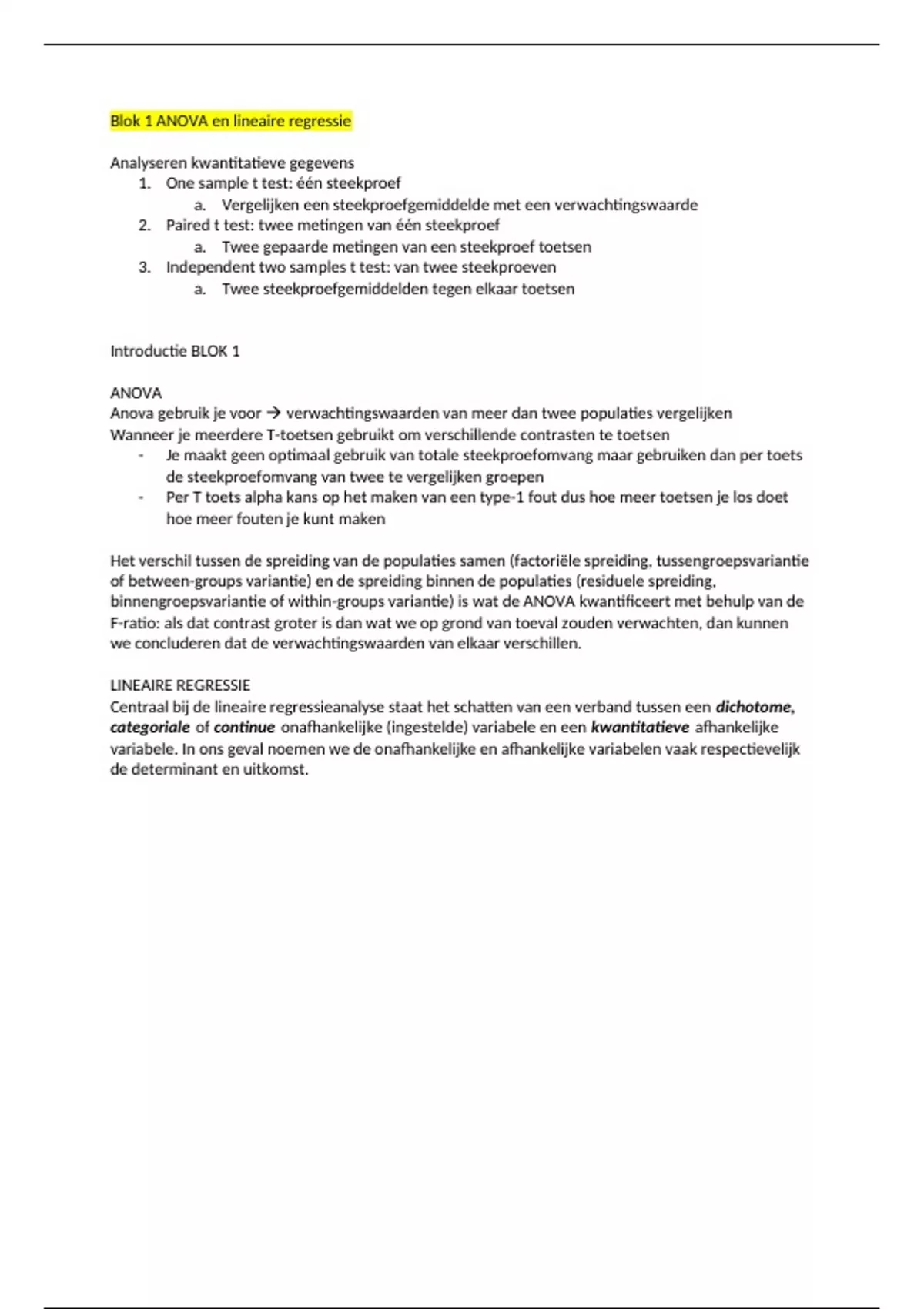 Anova gebruik je voor verwachtingswaarden van meer dan twee populaties vergelijken