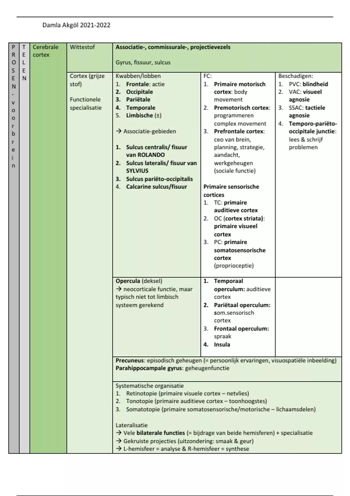 N stof) 1. Frontale: actie 1. Primaire motorisch 1. PVC: blindheid