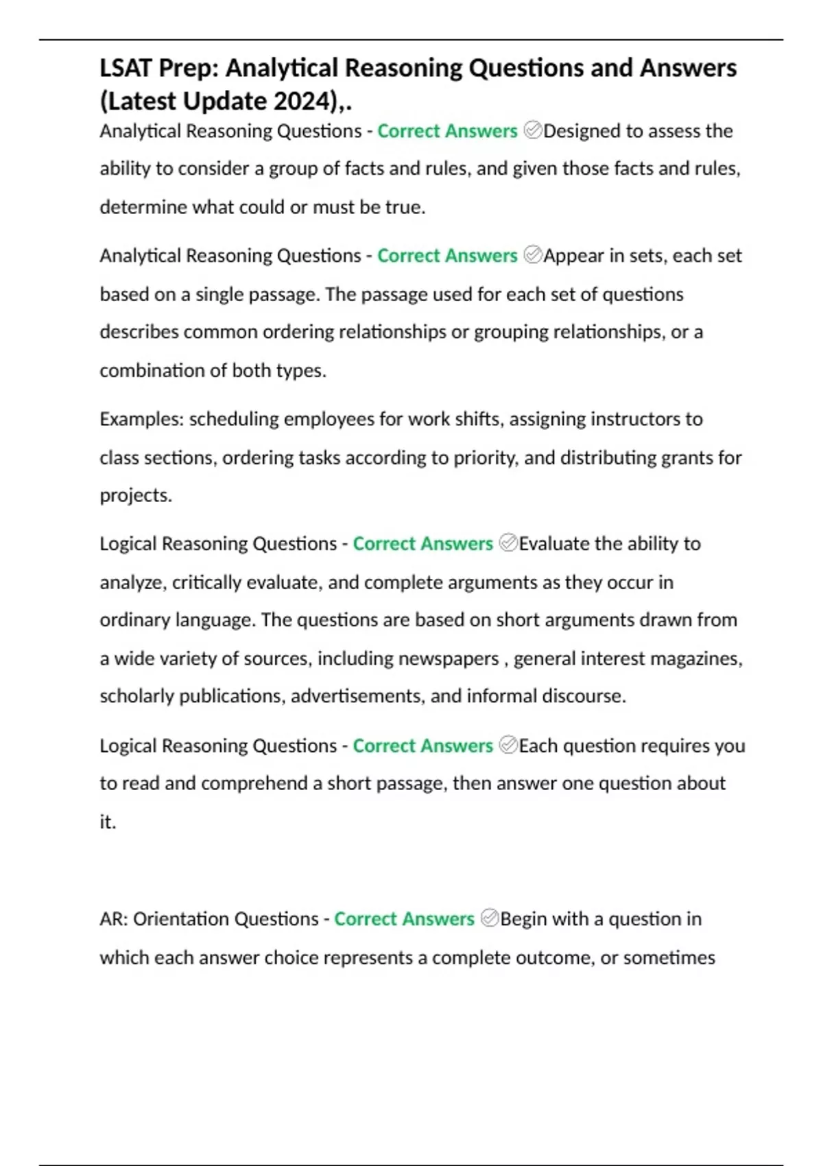 LSAT Prep: Analytical Reasoning Questions and Answers (Latest Update 2024)LSAT Prep: Analytical Reasoning Questions and Answers (Latest Update 2024)LSAT Prep: Analytical Reasoning Questions and Answers (Latest Update 2024)