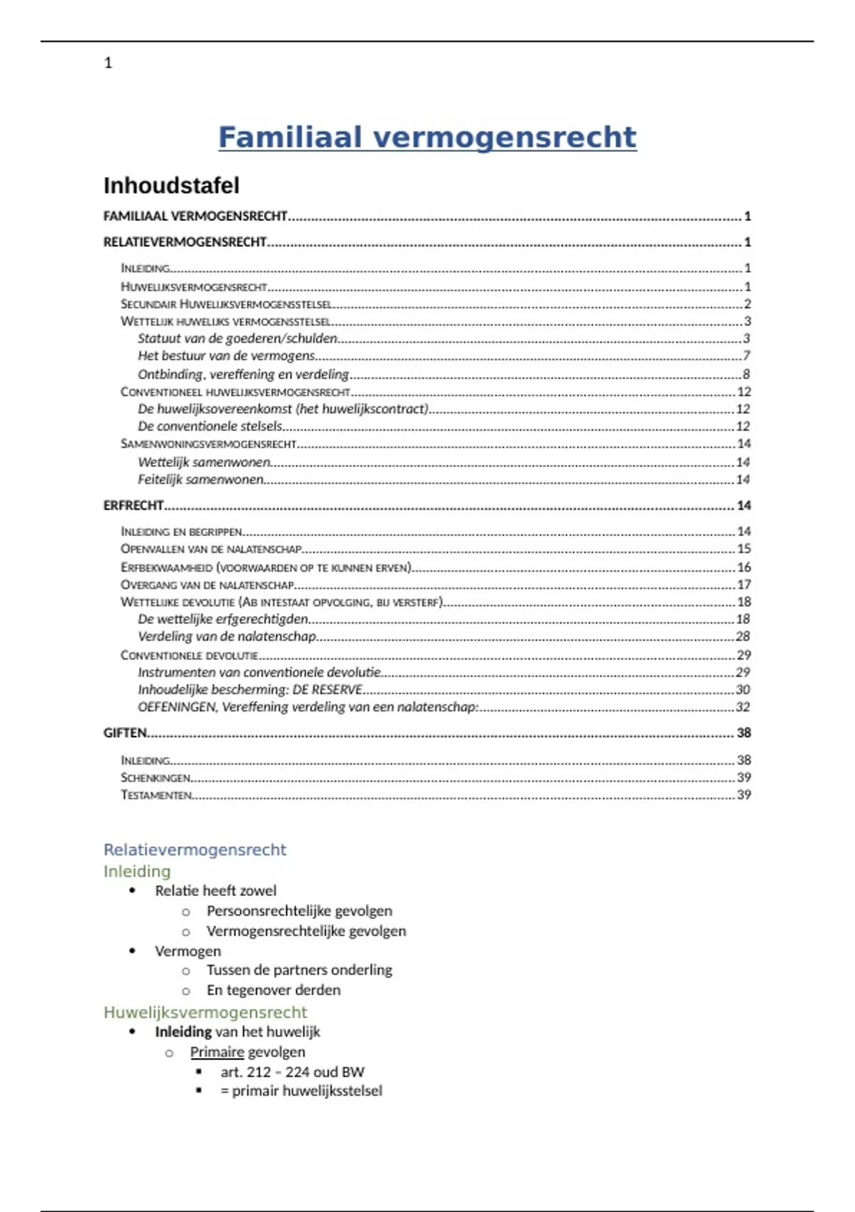 FAMILIAAL VERMOGENSRECHT..................................................................................................................... 1