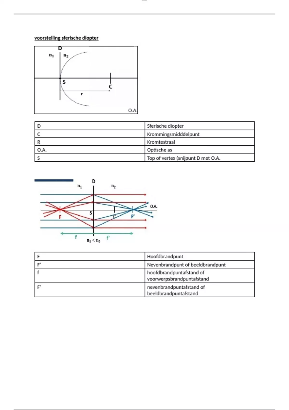 Samenvatting - Optica I - voorstelling sferische diopter