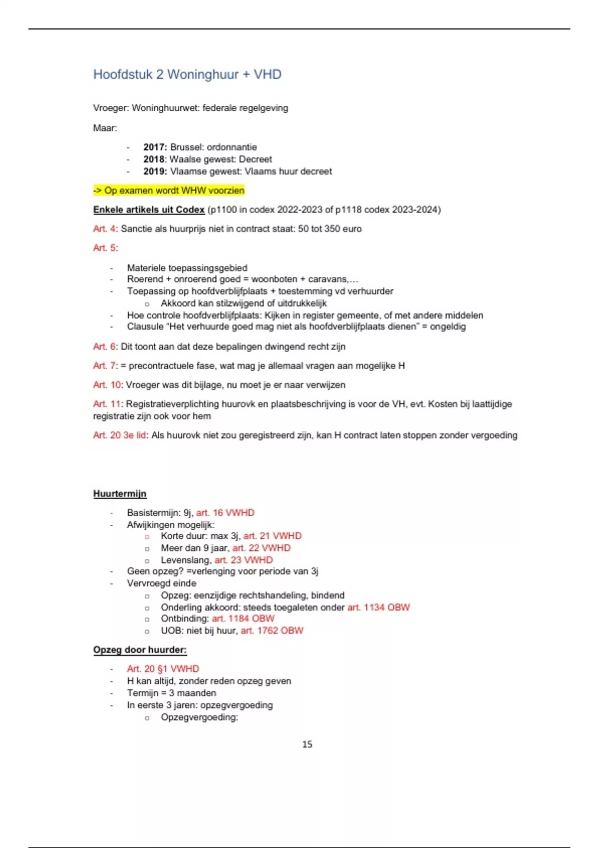 - Basistermijn: 9j, art. 16 VWHD