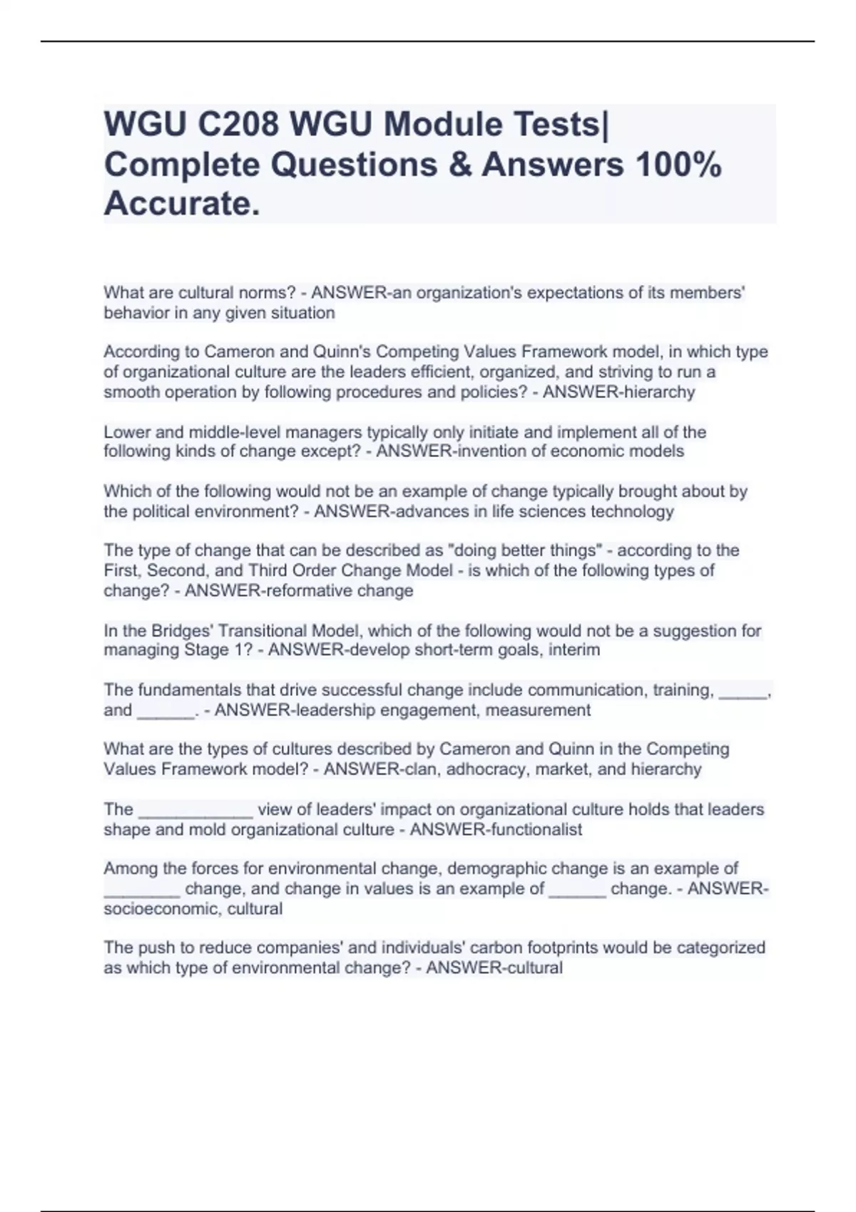 WGU C208 WGU Module Tests| Complete Questions & Answers 100% Accurate