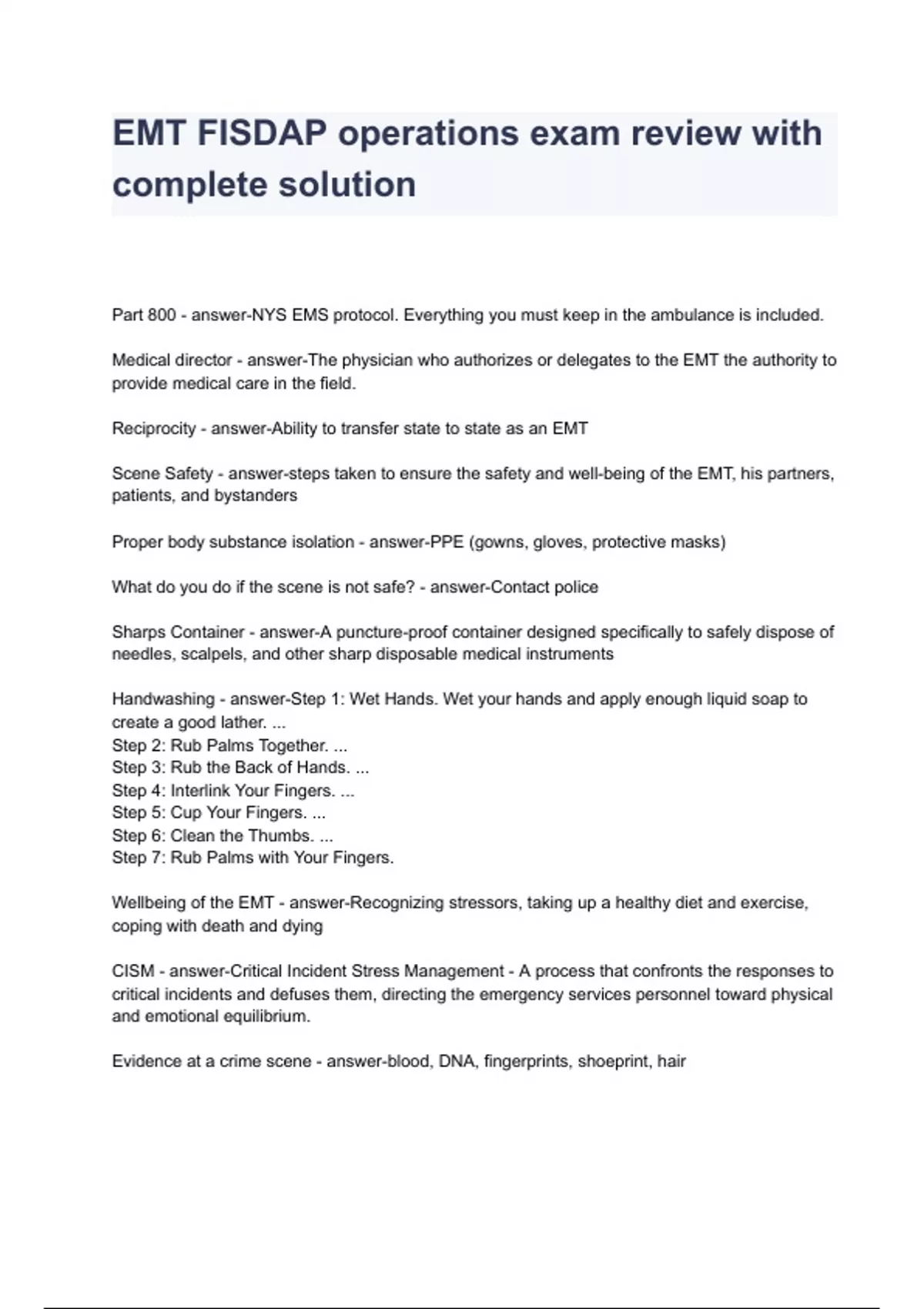 EMT FISDAP operations exam review with complete solution