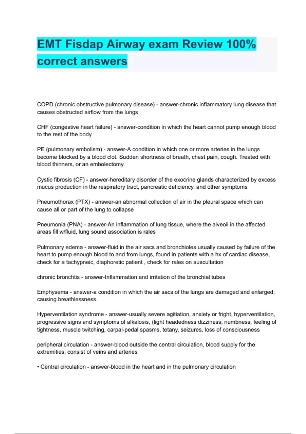 - EMT Fisdap Airway exm Revie