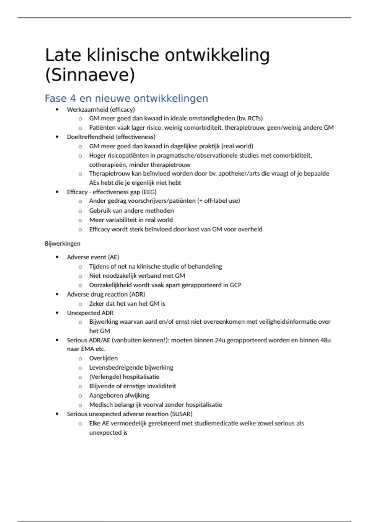 Serious ADR/AE (vanbuiten kennen!): moeten binnen 24u gerapporteerd worden en binnen 48u