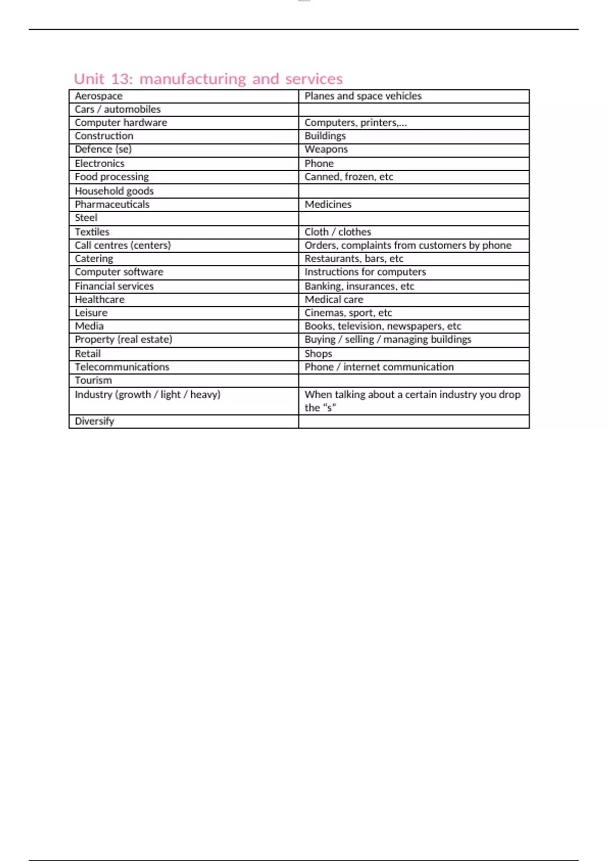 Unit 13: manufacturing and services