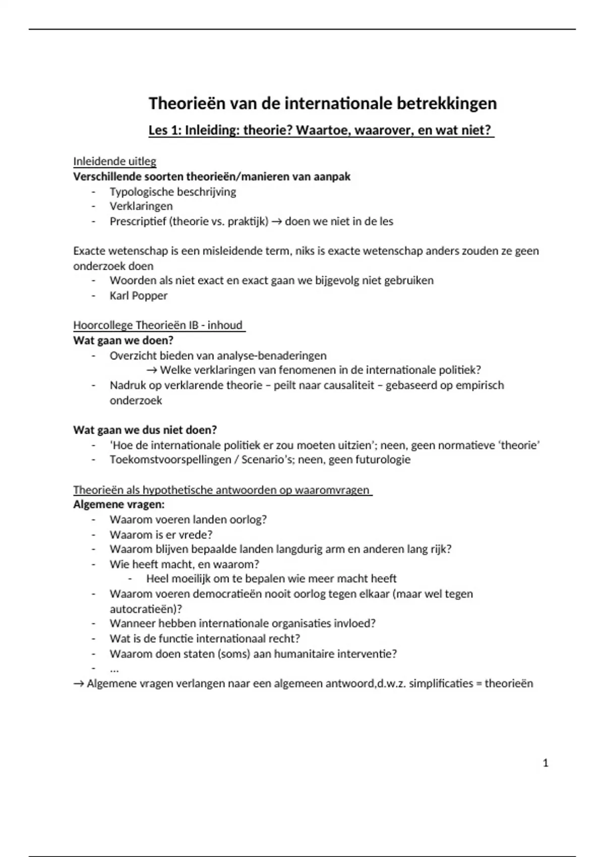 Hoorcollege Theorieën IB - inhoud