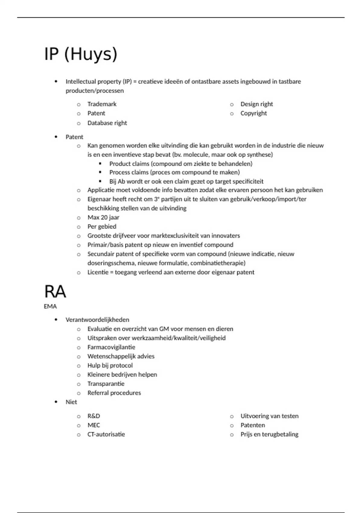 • Intellectual property (IP) = creatieve ideeën of ontastbare assets ingebouwd in tastbare