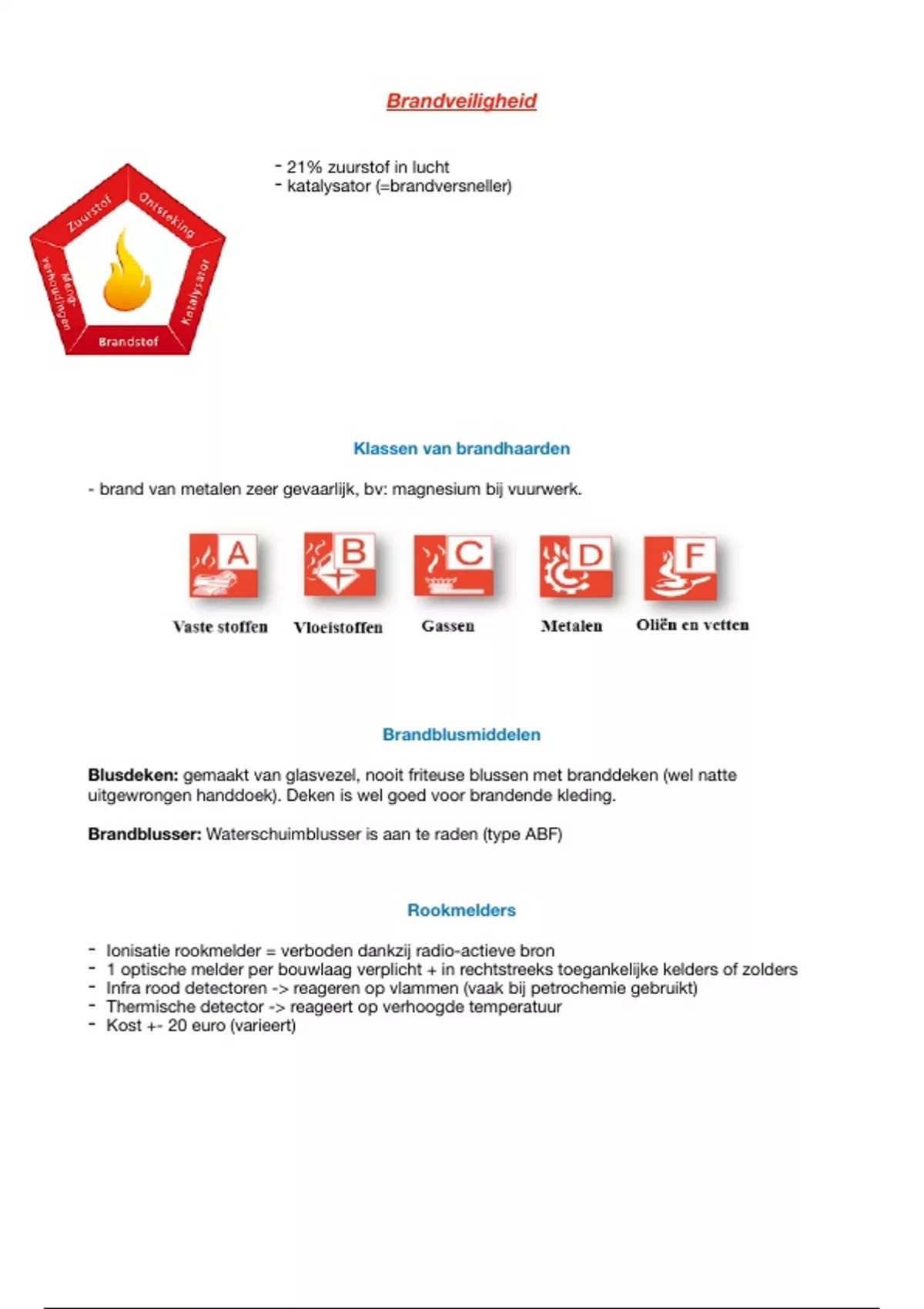 - brand van metalen zeer gevaarlijk, bv: magnesium bij vuurwerk.