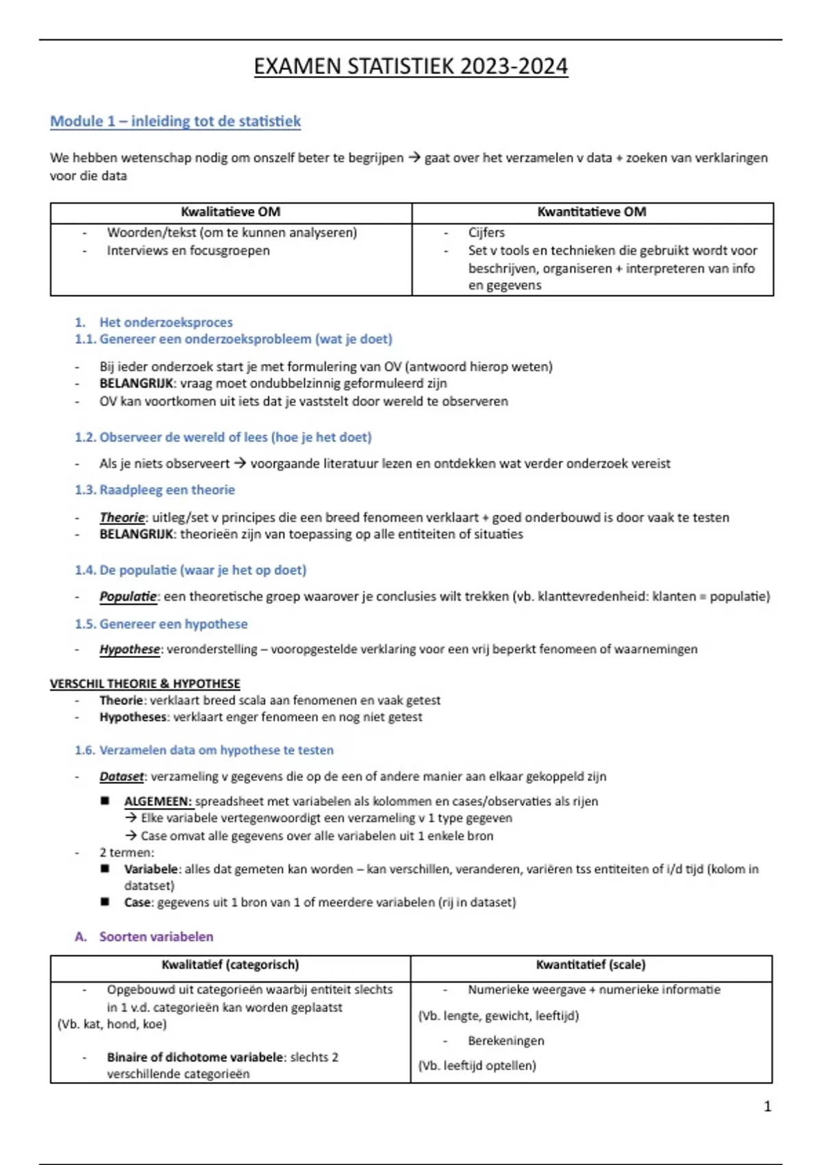 Samenvatting statistiek schakeljaar bedrijfskunde