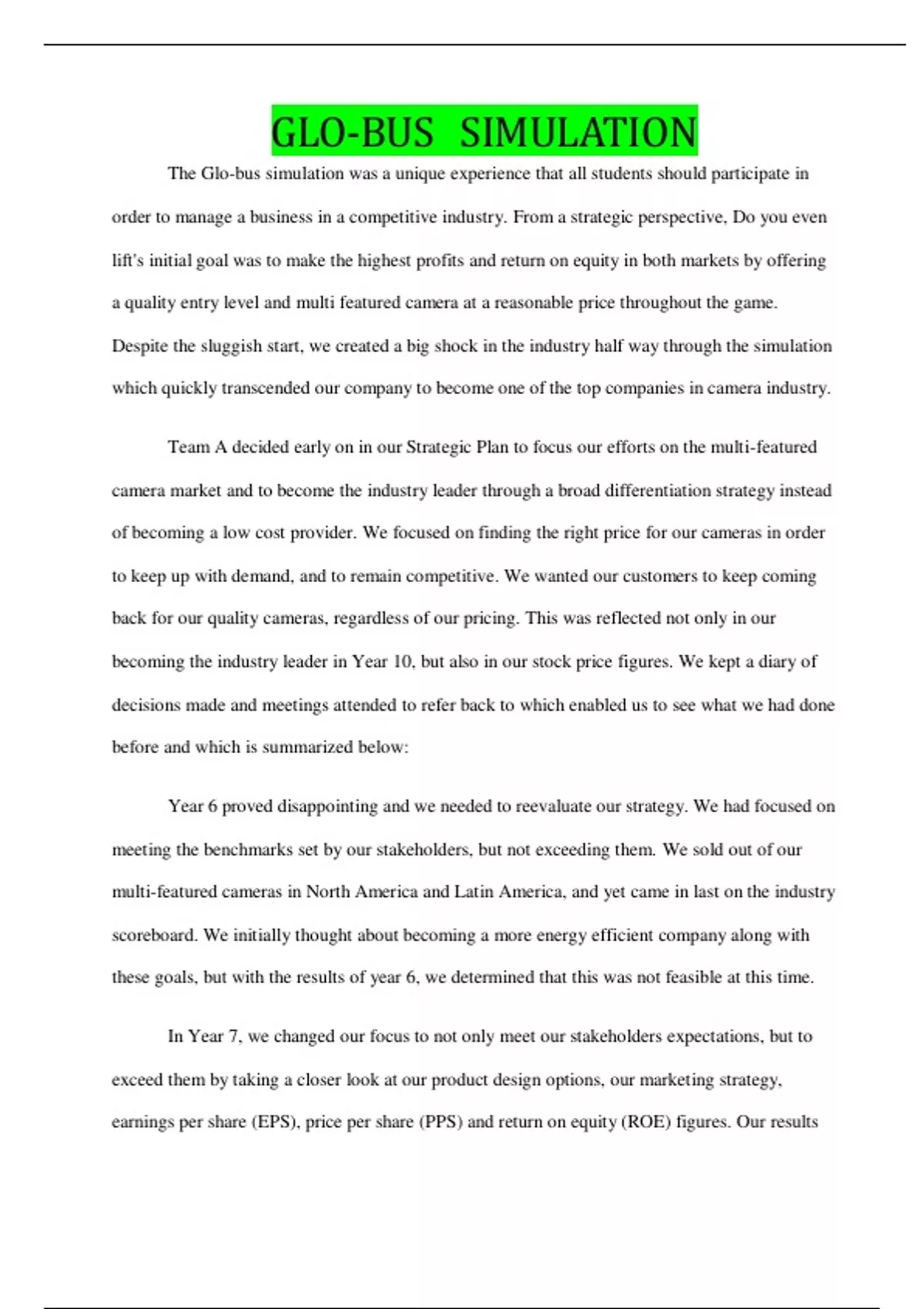 GLO-BUS SIMULATION 2024 Latest Questions and Answers (Verified by Expert)