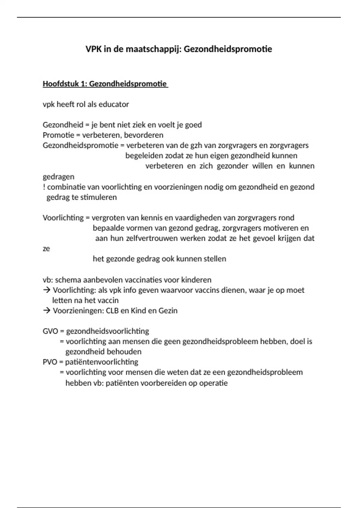 Samenvatting gezondheidspromotie 1V