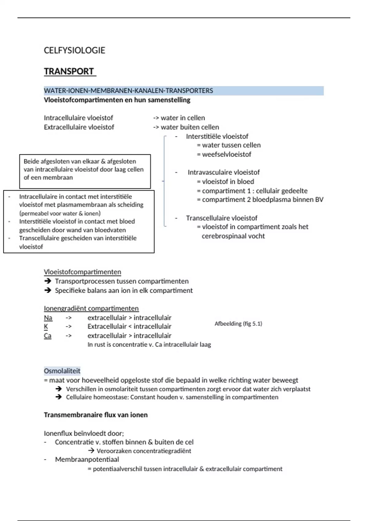Verschillen in osmolariteit tussen compartimenten zorgt ervoor dat water zich verplaatst