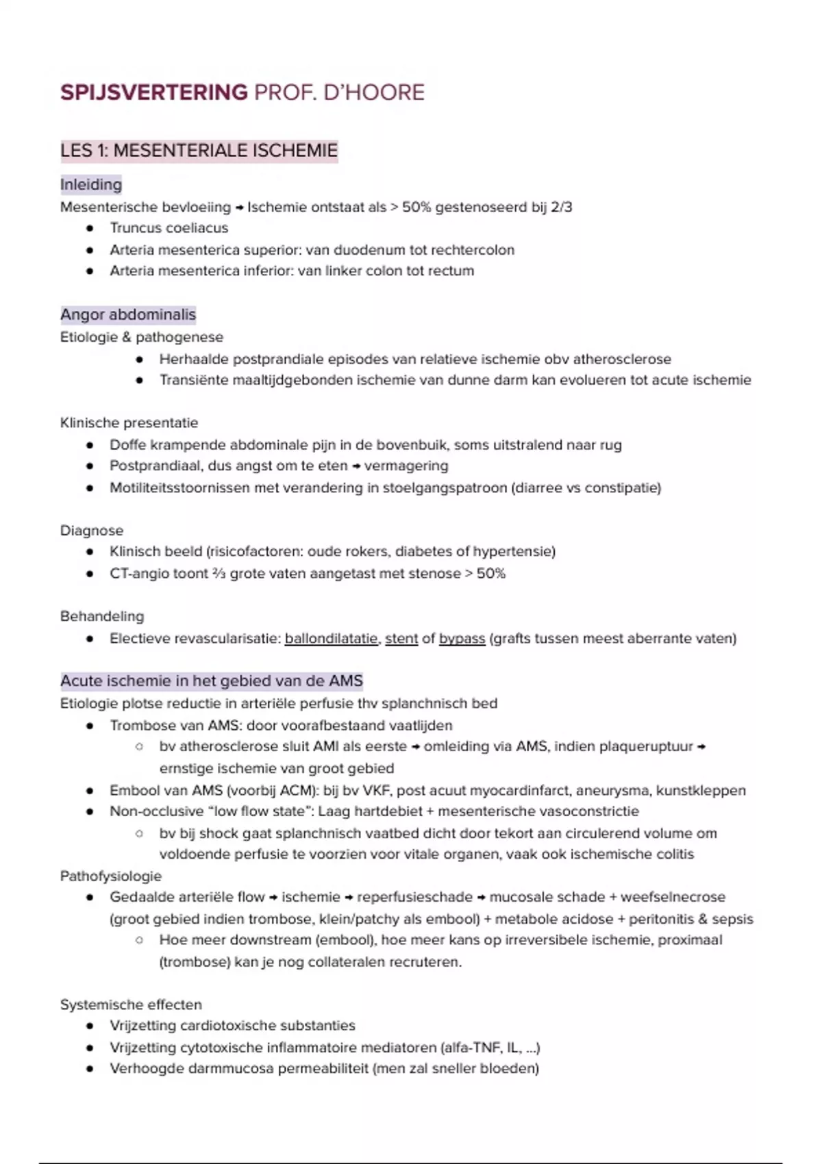 Samenvatting Spijsvertering professor D'Hoore