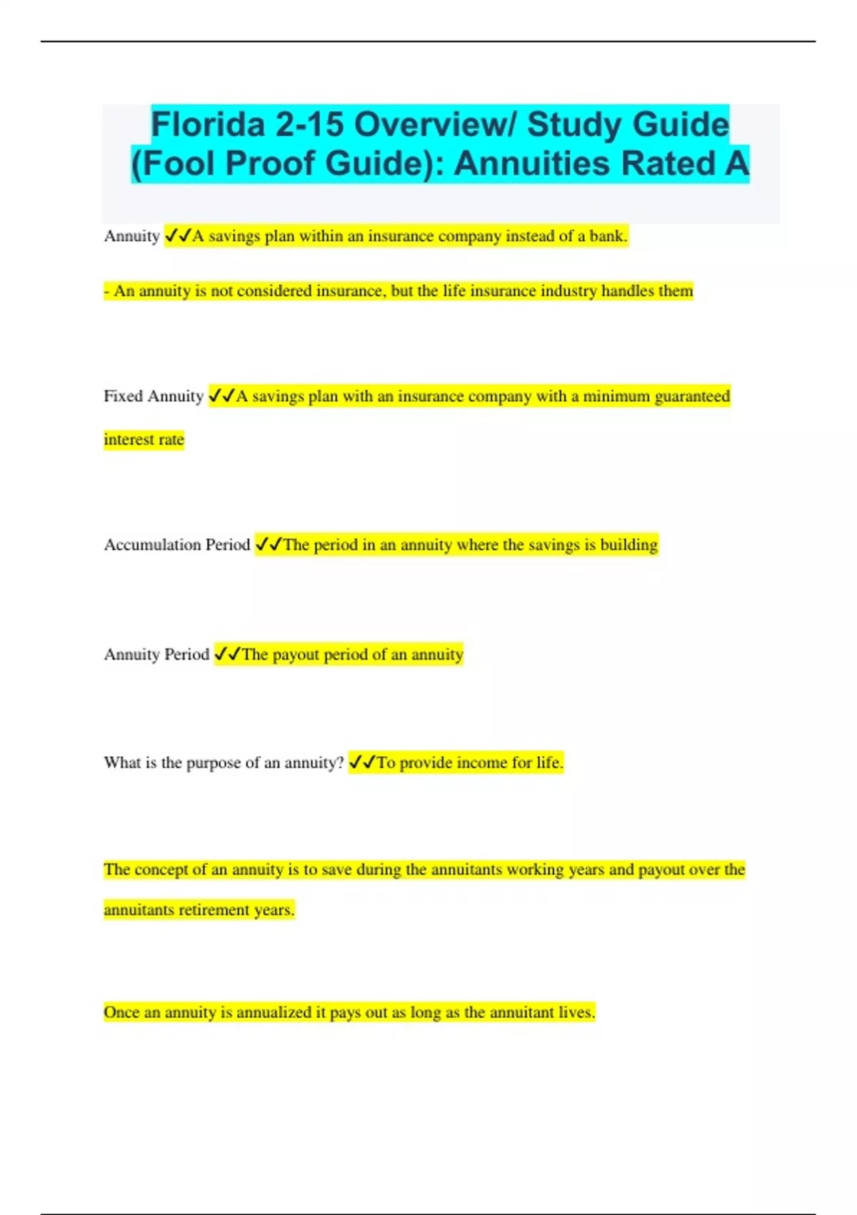 Florida 2-15 Overview/ Study Guide (Fool Proof Guide): Annuities Rated A