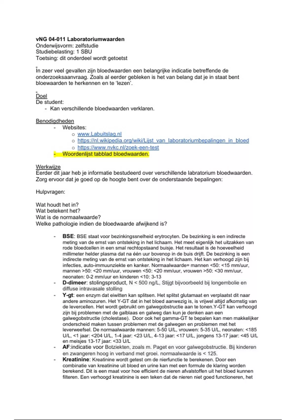 - Woordenlijst tabblad bloedwaarden.
