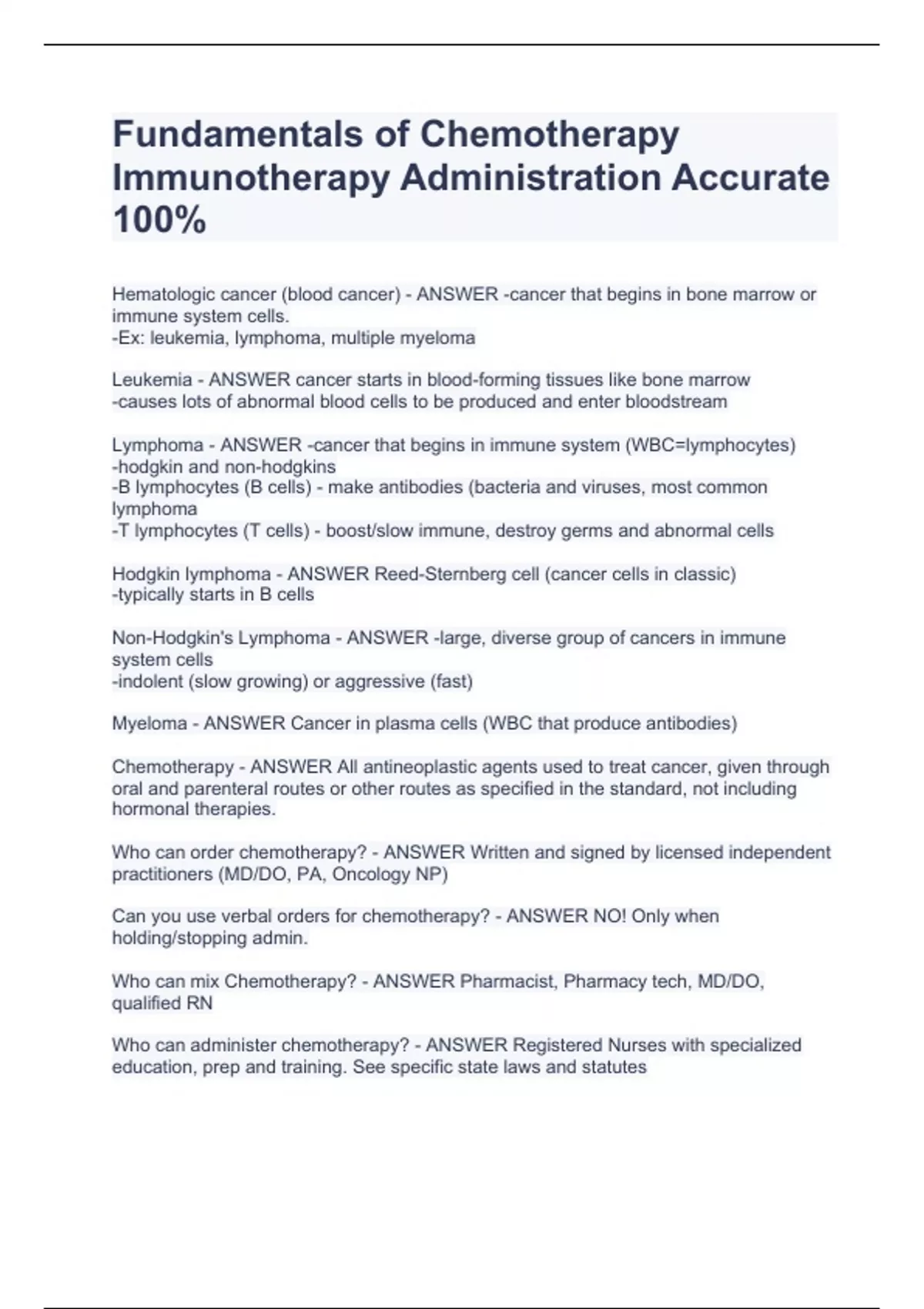 Fundamentals of Chemotherapy Immunotherapy Administration Accurate 100%
