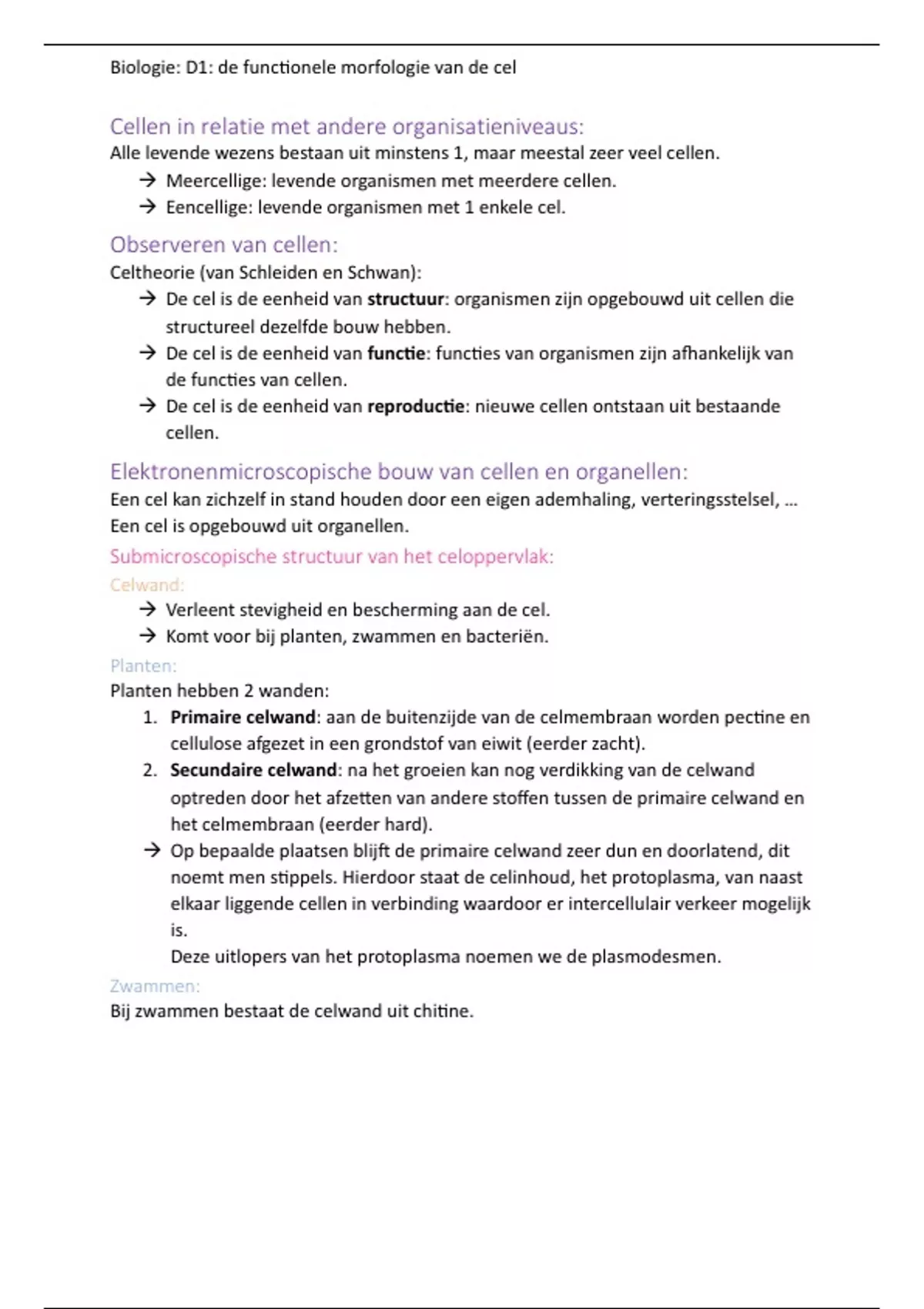 , Biologie: D1: de functionele morfologie van de cel